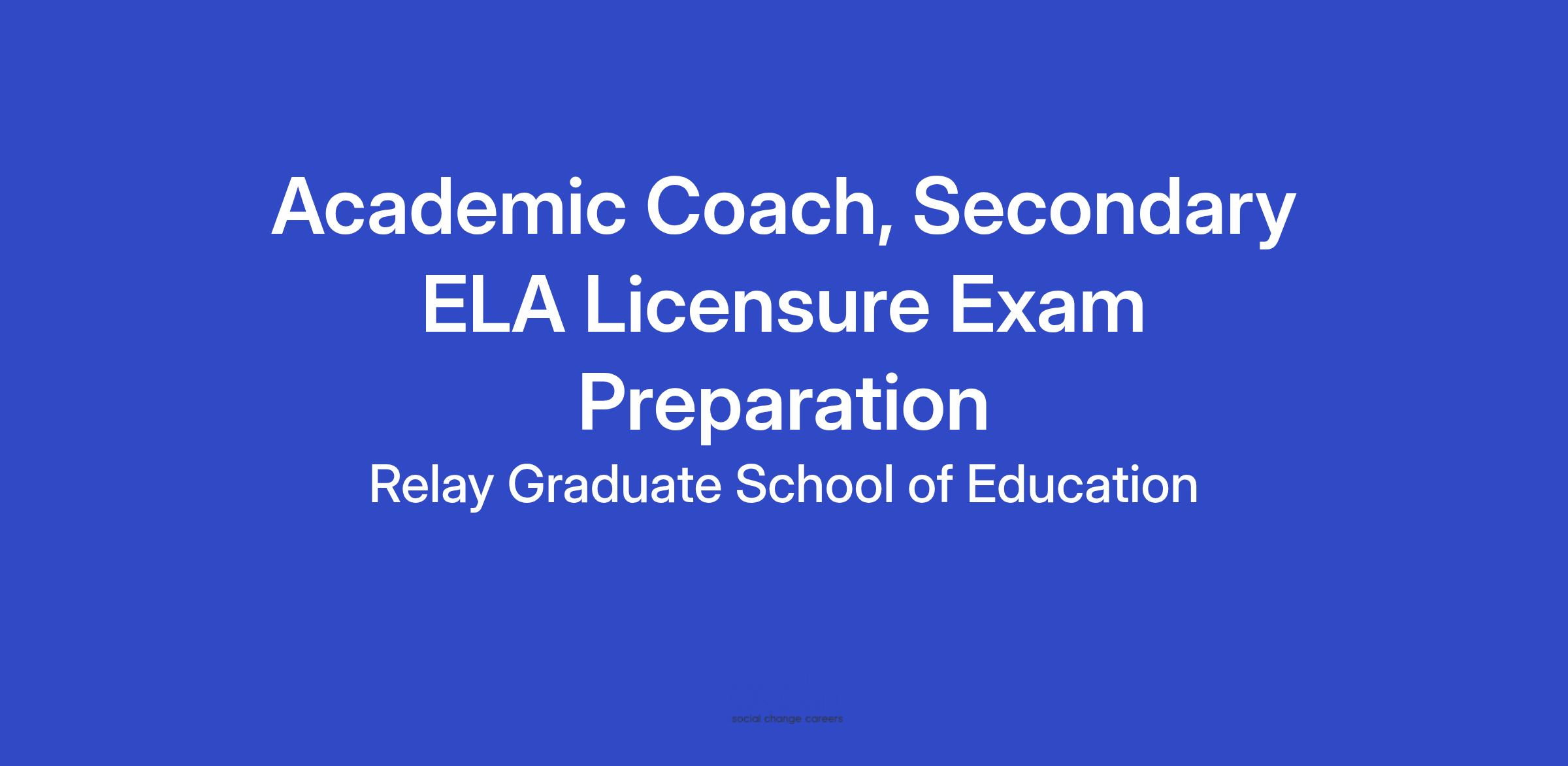 The Relay Graduate School of Education seeks experienced educators to serve as Academic Coaches in the Licensure Exam Preparation Department. Academic Coaches will work directly with teacher candidates to strengthen their content knowledge, enhance their study skills, and improve test-taking strategies to prepare for educator licensure exams (e.g., Praxis, GACE, NYSTCE, ILTS, PECT, TExES). Coaches will also support candidates in managing test anxiety and fostering academic confidence through individualized coaching and evidence-based strategies.