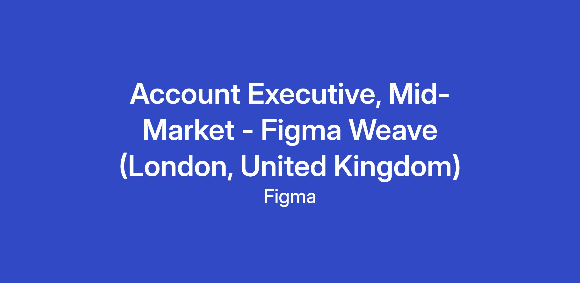 We are looking for an Account Executive, Mid-Market, supporting Figma Weave, who will play a critical role in driving sales and maximizing revenue with our customers. You will be responsible for targeting, building and nurturing positive relationships with key decision-makers, understanding complex business needs, and delivering innovative solutions across our product suite. This is an opportunity to accelerate your career, learn from leading sellers in the industry and build an incredible network of cross functional partners at Figma.