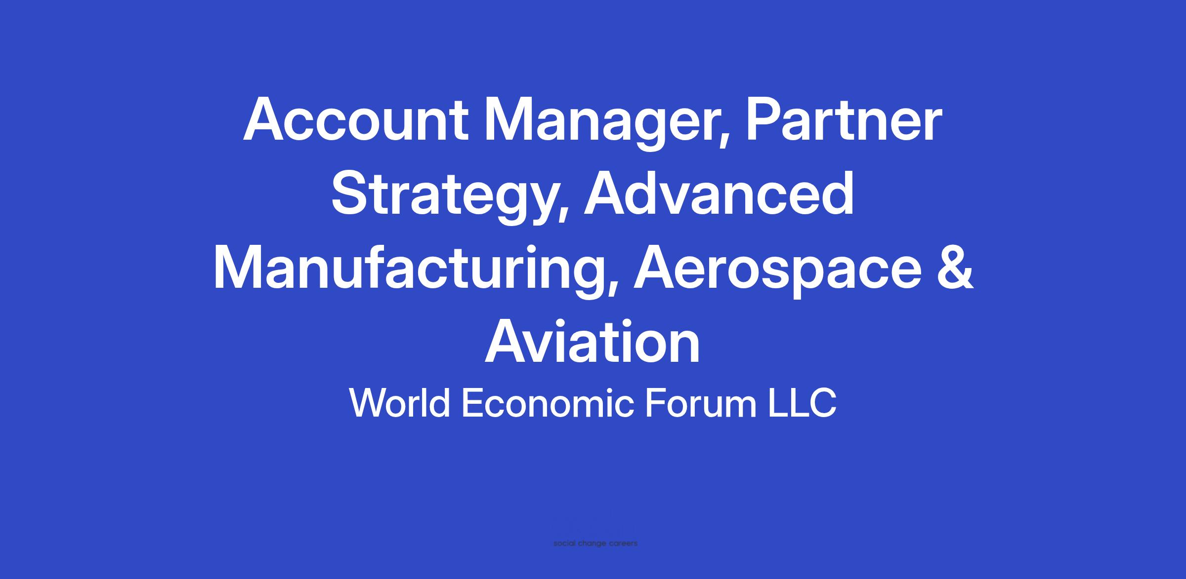 We are currently searching for a Partner Lead (account manager), who will focus on building and reinforcing strategic relationships and interactions with senior executives from Forum Partner companies in the Advanced Manufacturing, Aerospace and Aviation Industries.
