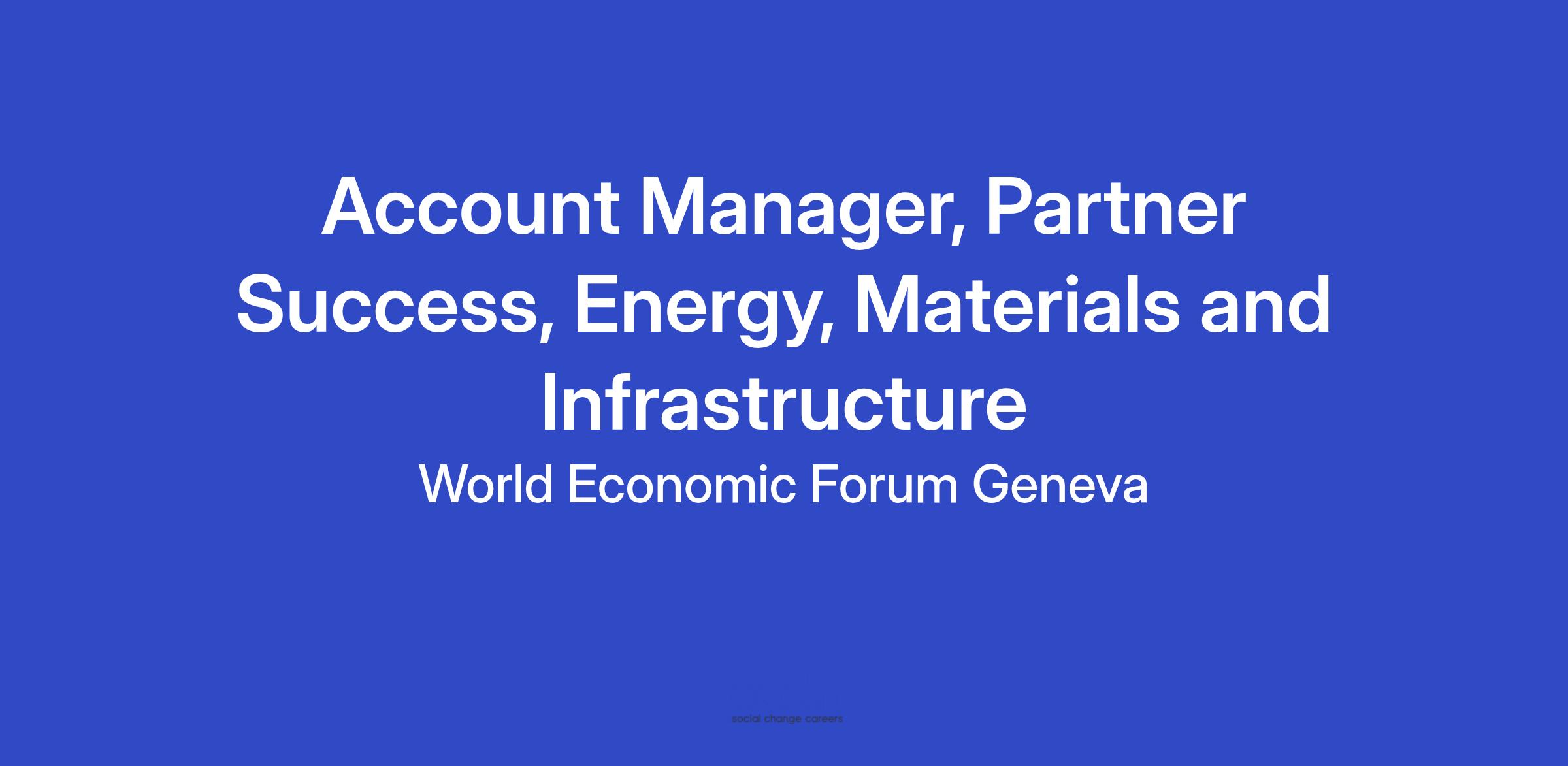 We are currently searching for an Account Manager (Partner Success Lead), who will focus on building and reinforcing interactions with Partner Representatives from the Energy, Materials and Infrastructure Industries (Chemicals, Built Environment, Oil and Gas) at Forum Partner companies.