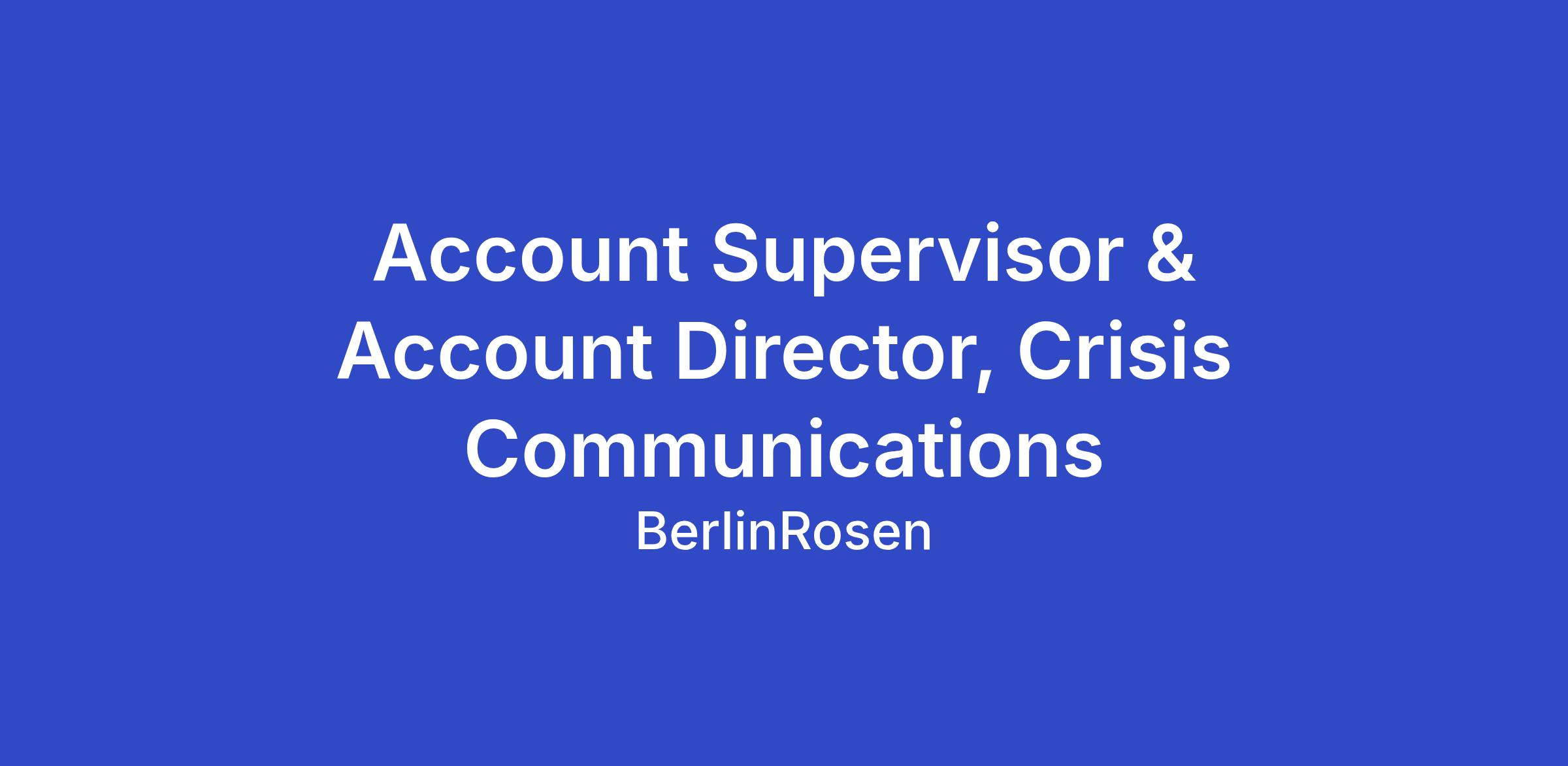 As an Account Supervisor or Account Director on our Legal Affairs and Crisis Communications team, you will…