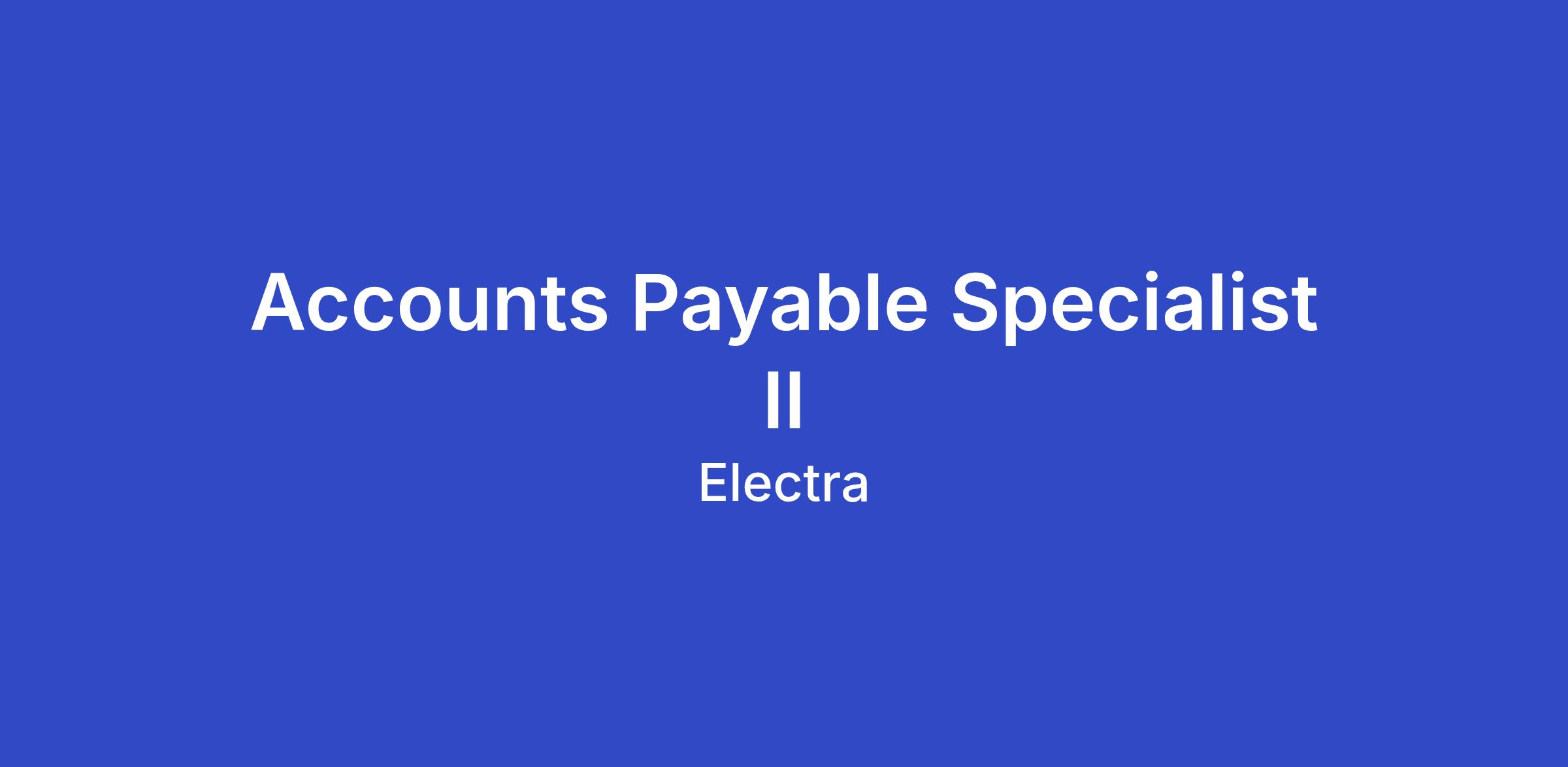 As an Accounts Payable Specialist II, you will play a key role in the setup and optimization of AP automation systems, developing strategic processes for growth, and ensuring efficient, accurate, and timely processing of payables. You will be responsible for daily invoice processing, exceptional follow-up, leveraging 3-way match processes to resolve discrepancies, and maintain compliance with GAAP and Electra’s accounting policies.