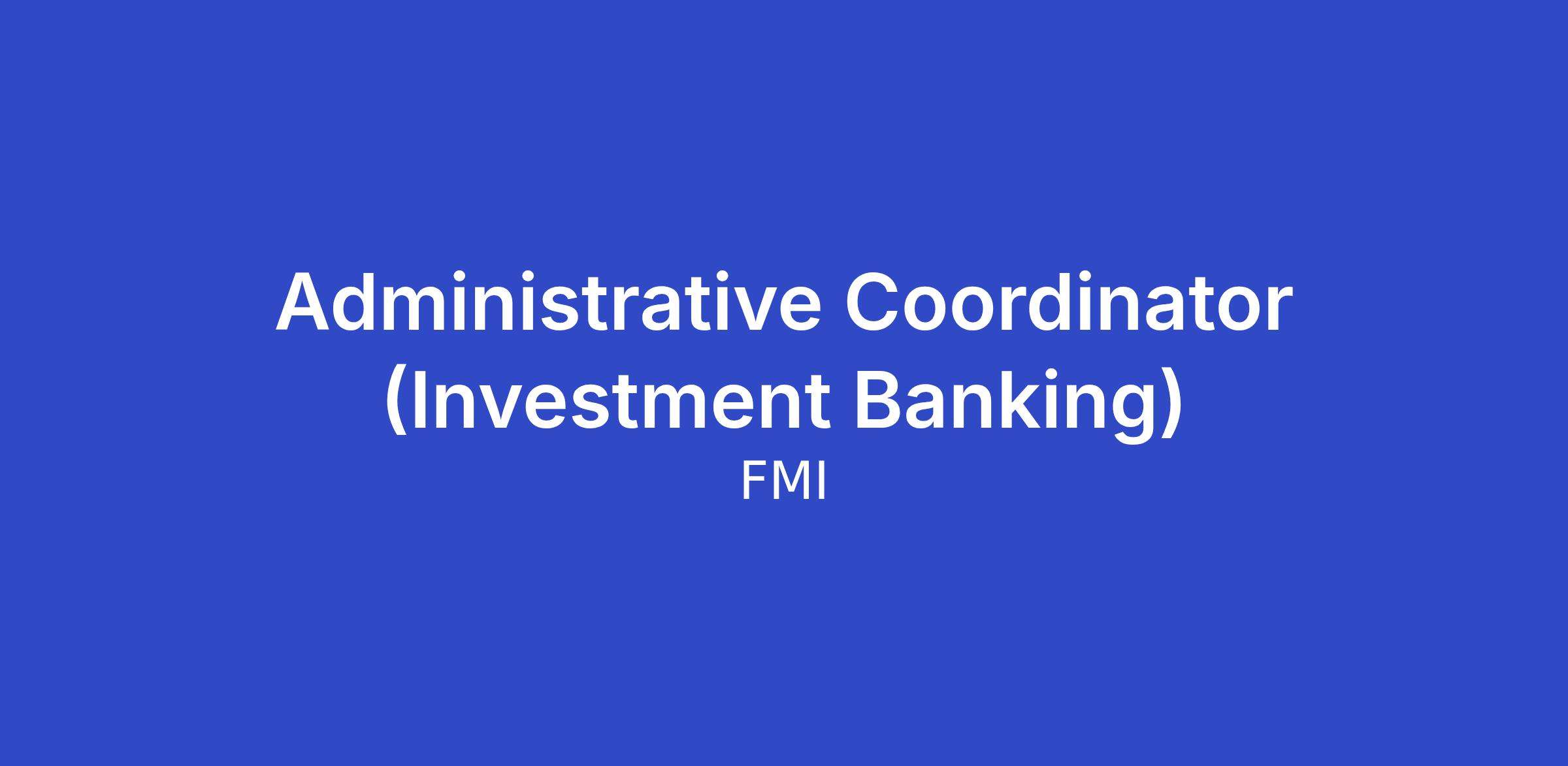 Administrative Coordinator (Investment Banking)