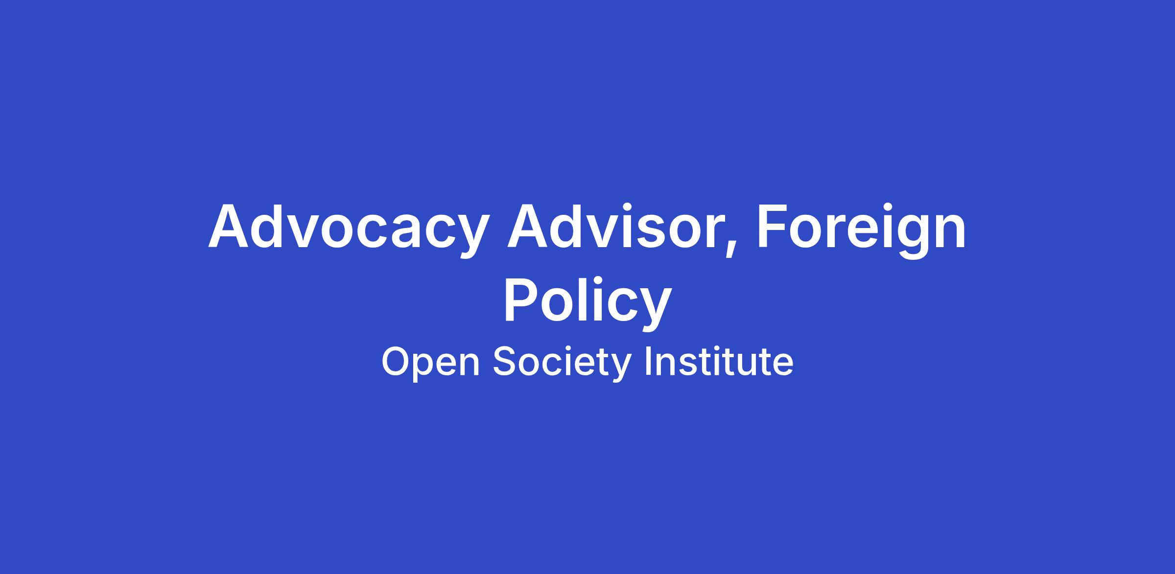 Role Title: Advocacy Advisor, Foreign Policy