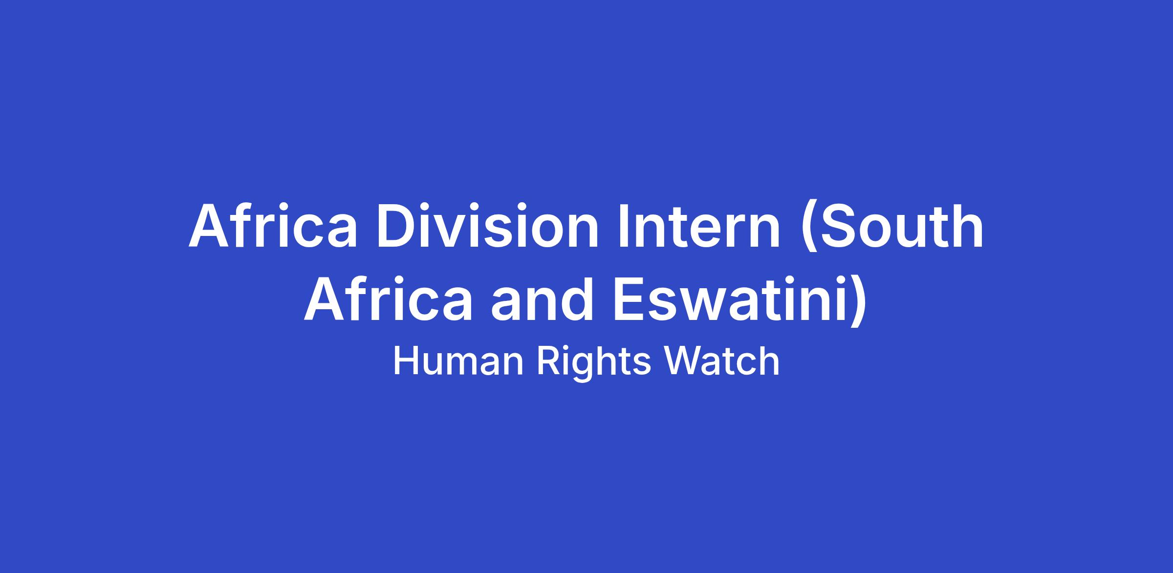 The Africa Division of Human Rights Watch (HRW) is seeking a university student intern based in the Johannesburg Office beginning April 2026 through August 2026. Ideally, the candidate should be available to intern part-time, 18-20 hours per week, for the duration of the internship. The internship will primarily focus on ongoing projects and research in South Africa and Eswatini.