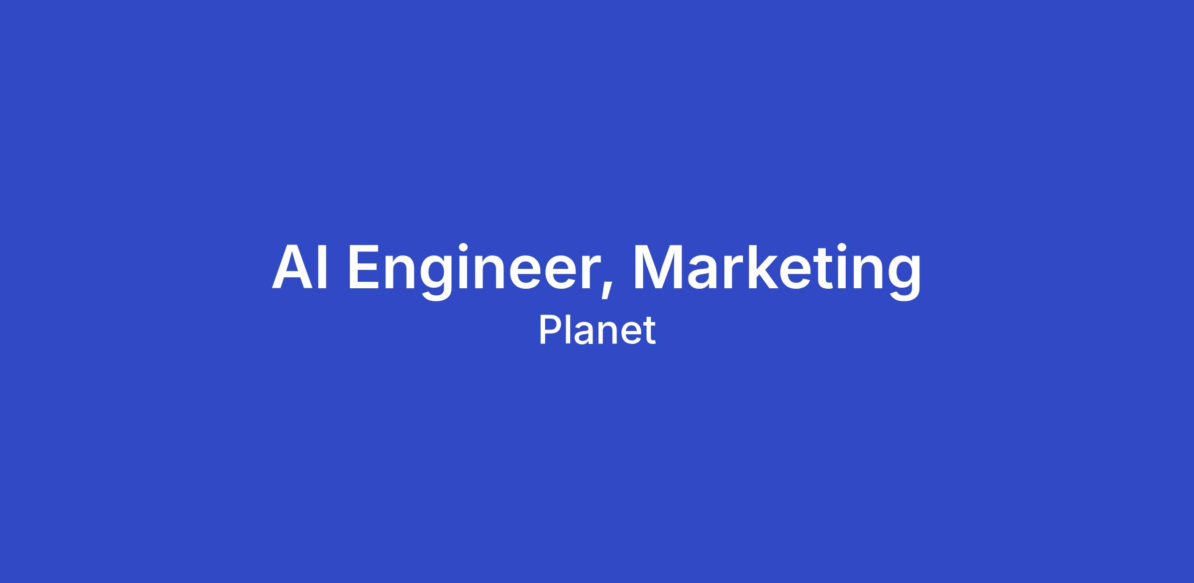 The AI Engineer will help define, architect, and implement / project manage how artificial intelligence is applied across Planet's marketing organization to improve efficiency, scalability, and performance. This role will identify opportunities to integrate AI into marketing workflows, campaign development, and marketing operations, while helping build the technical infrastructure in tandem with the corporate engineering team that powers pipeline generation and customer acquisition.