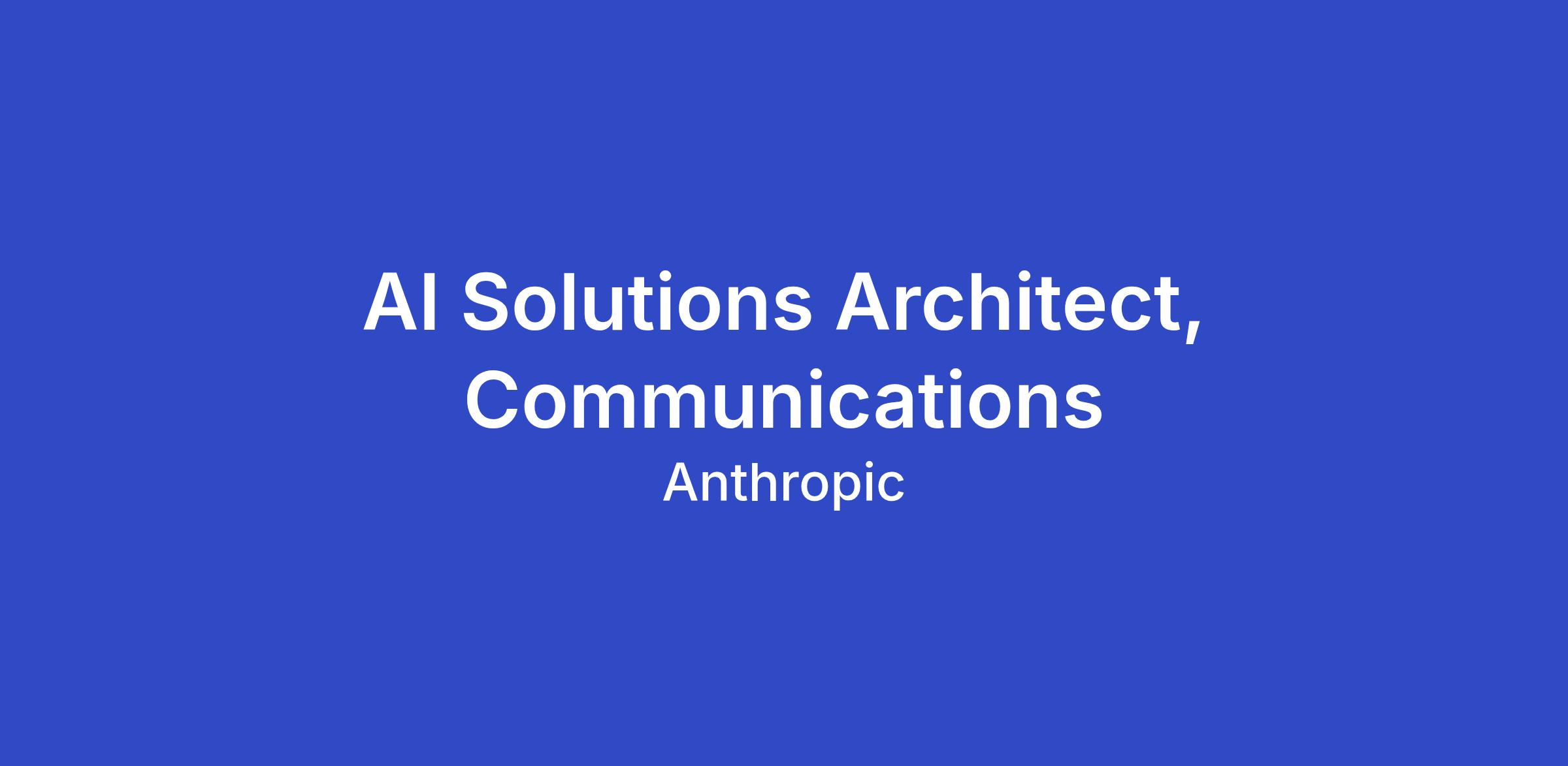 Anthropic is seeking an exceptional AI Solutions Architect to build intelligent systems that amplify the effectiveness of our Communications team. In this role, you will identify workflow opportunities across the team, develop Claude-powered solutions in partnership with our engineering organization, train Comms team members to use those tools confidently, and document improvements so the knowledge can scale to other teams across Anthropic.