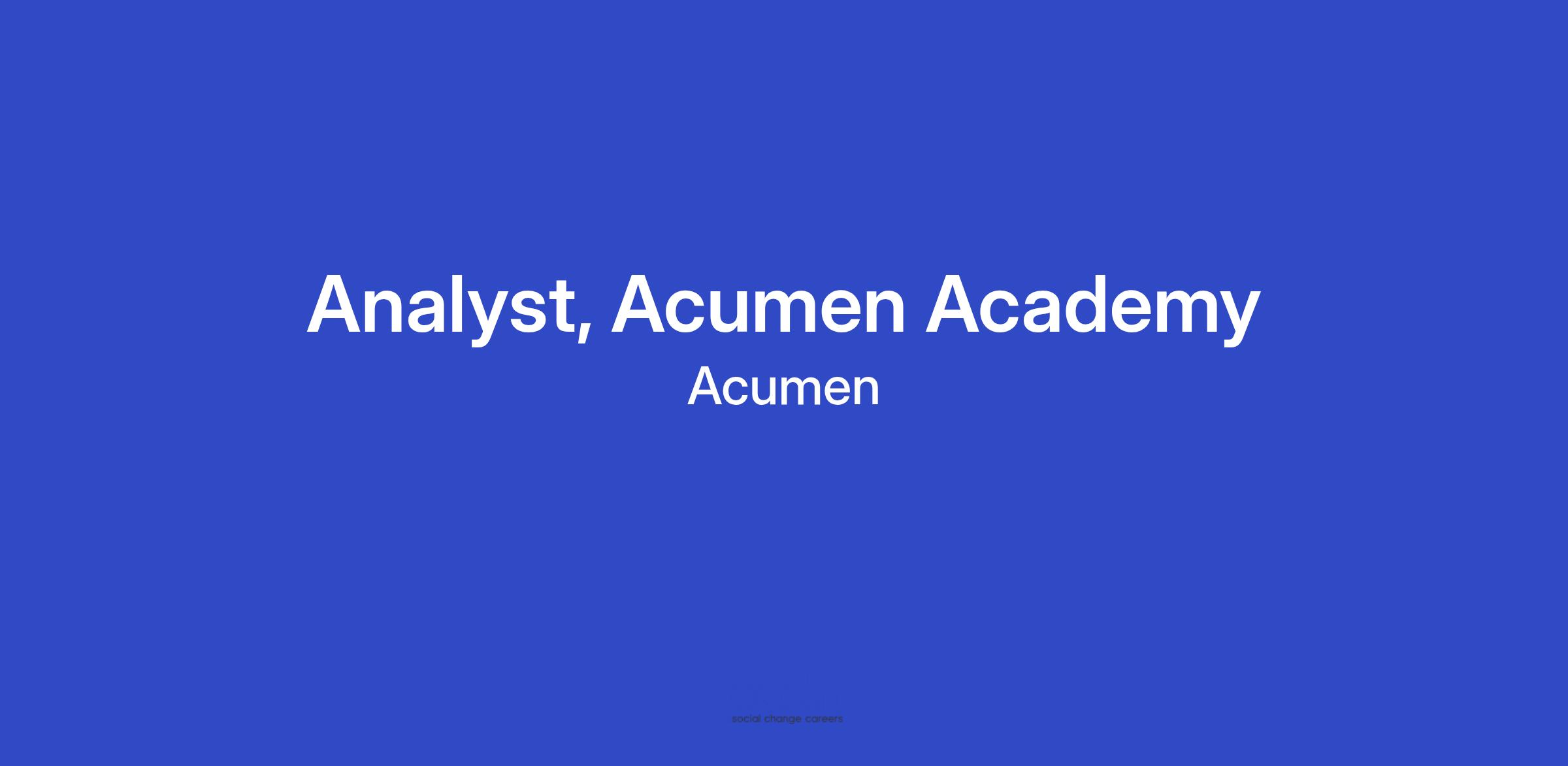 Acumen Academy is the world’s school for social change. We aim to unleash a new generation of social innovators and leaders with the character and competence to build a more just, inclusive and sustainable world. Anyone with an internet connection, anywhere in the world, can access the practical tools, practices, resources and supportive community they need to achieve positive social change. With 1,000 Fellows and Accelerator alumni, and 1.2M course sign-ups from 193 countries, the Acumen Academy community represents a new generation of social innovators and leaders committed to doing what’s right in a world that loves easy.