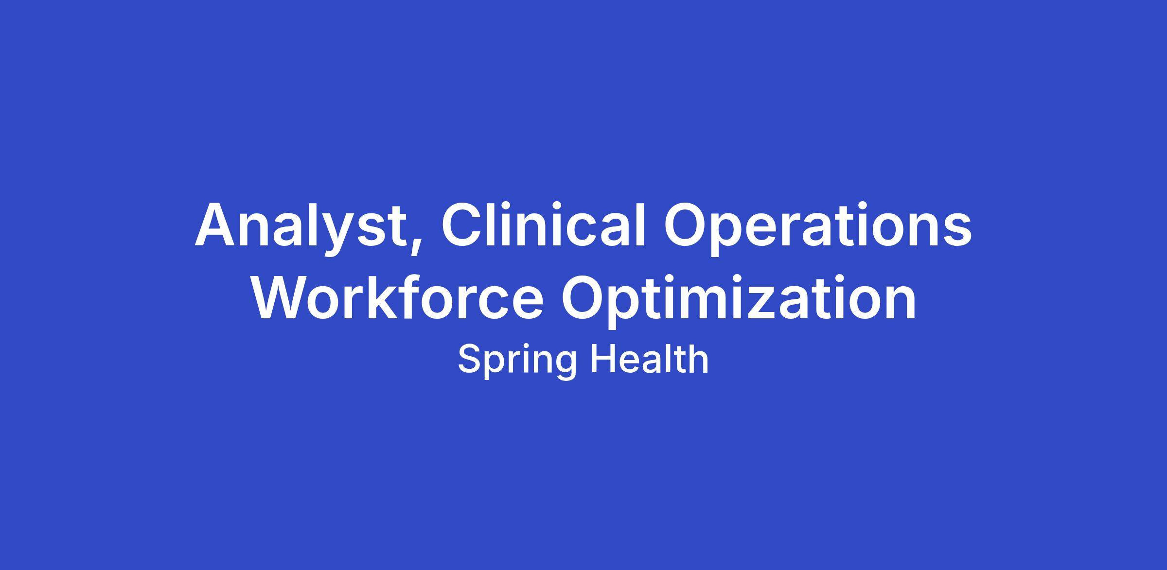 Reporting to the Director of Operations Analytics & Workforce Optimization, the Analyst, Clinical Operations Workforce Optimization will ensure the right people and capacity are in place within the Clinical Operations department to meet member needs efficiently. This role is part of the Operations Analytics & Workforce Optimization team—within the broader Operations Intelligence function—and plays a critical role in driving efficient service delivery and strategic workforce planning. This is a full time, fully-remote position, though the ability to be onsite in our NYC office once a week is preferred.