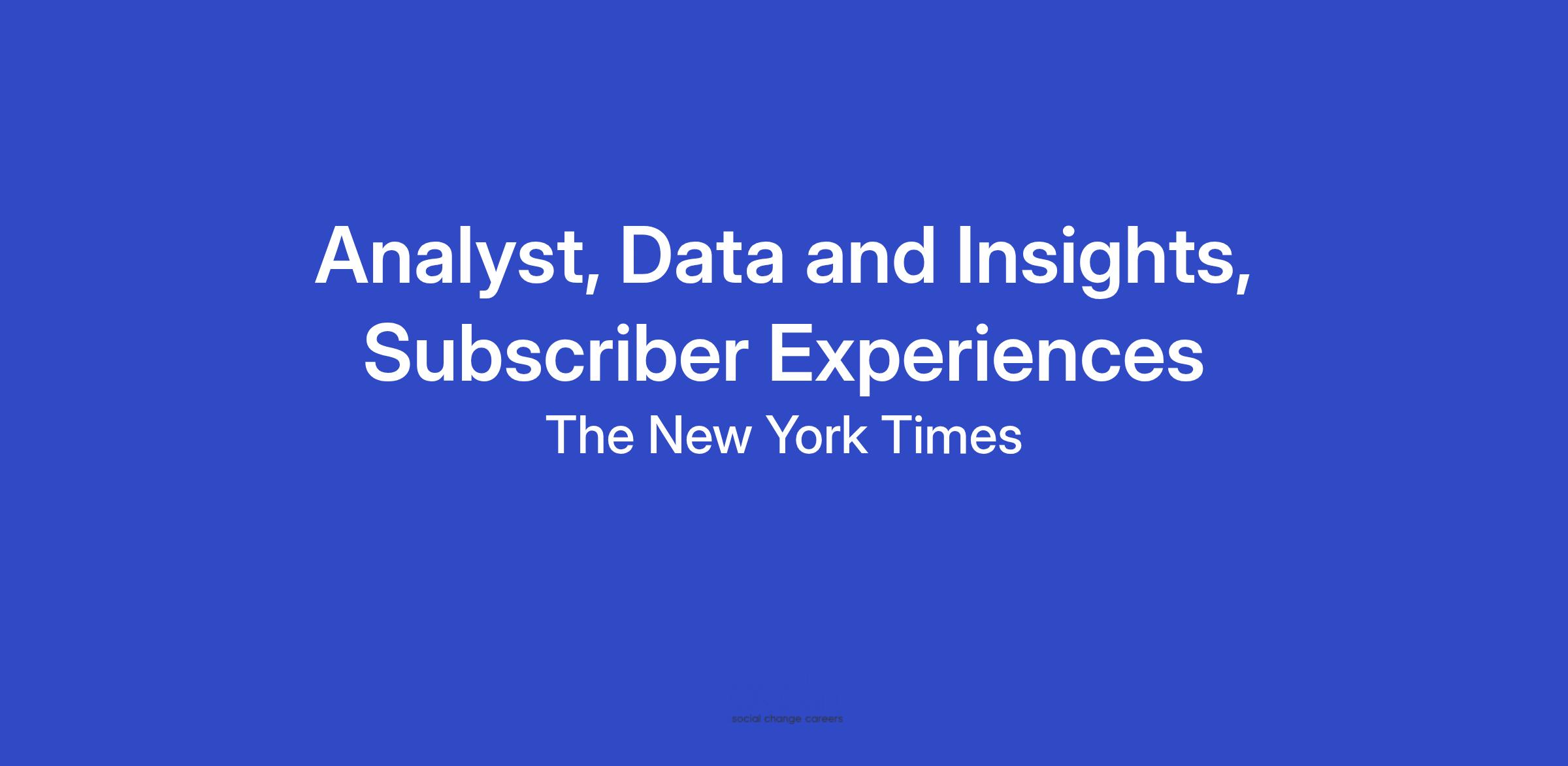 As part of the Data and Insights Group (DIG), you will join a large community of accomplished analysts who partner with Product, Engineering, Design, and PMO teams across the business. You will support the Subscriber Experience Mission, focused on programmed surfaces, encompassing important products such as: editorial, email, and Home. You will work directly with partners to help us understand and build opportunities to engage millions of users with NYT journalism through product initiatives. You will report to the Director, Analytics, Subscriber Experiences.