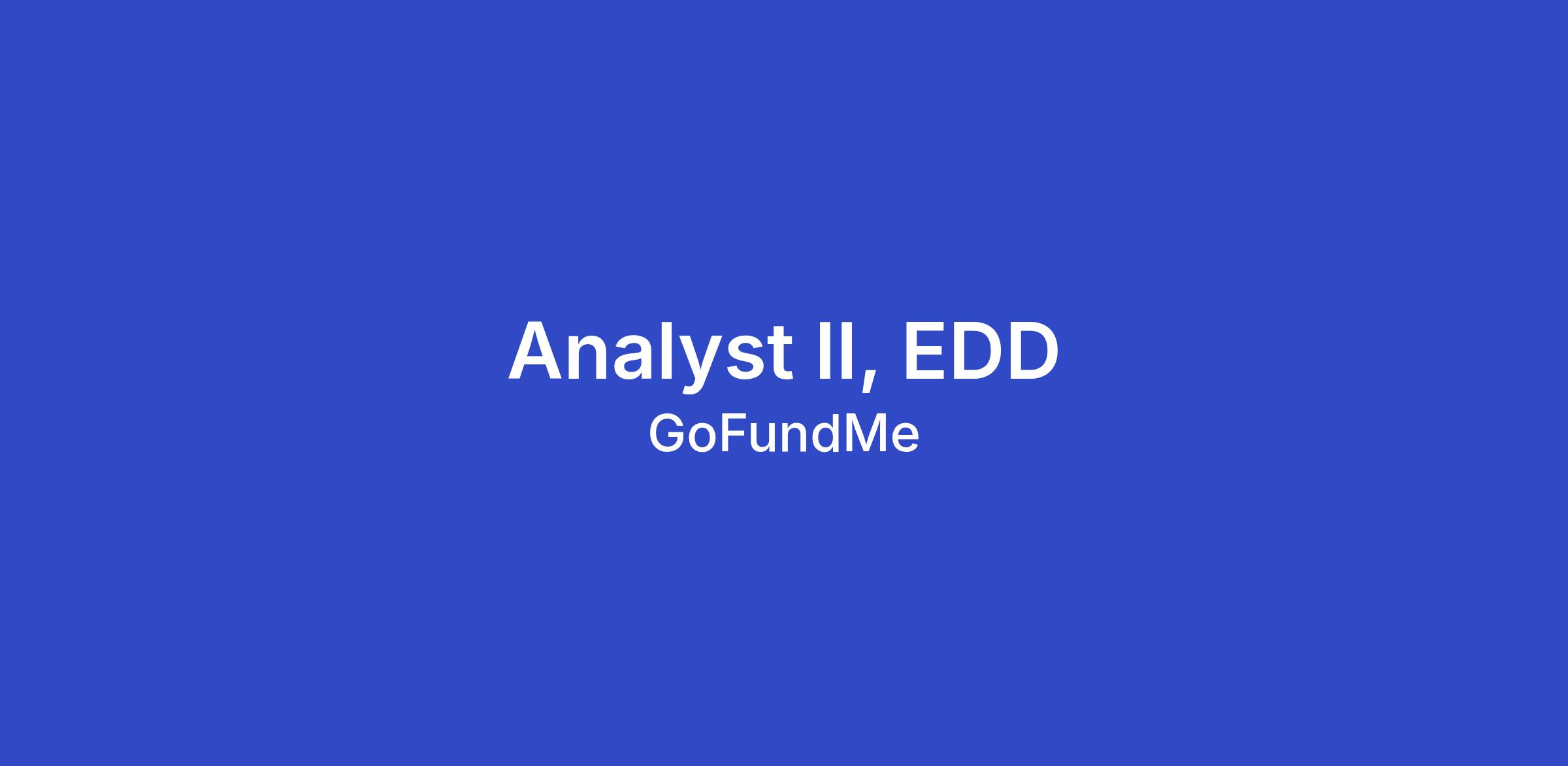 Join us! The GoFundMe team is searching for a skilled and passionate Enhanced Due Diligence (EDD) Analyst II to join our global Trust & Safety team. Trust & Safety is an integral part of GoFundMe's business. It drives growth, builds and nurtures our brand, and ensures that we always do the right thing by our customers. We are at the front line of GoFundMe’s efforts to protect donors, fundraiser organizers, beneficiaries, and our company from financial crimes and abuse.