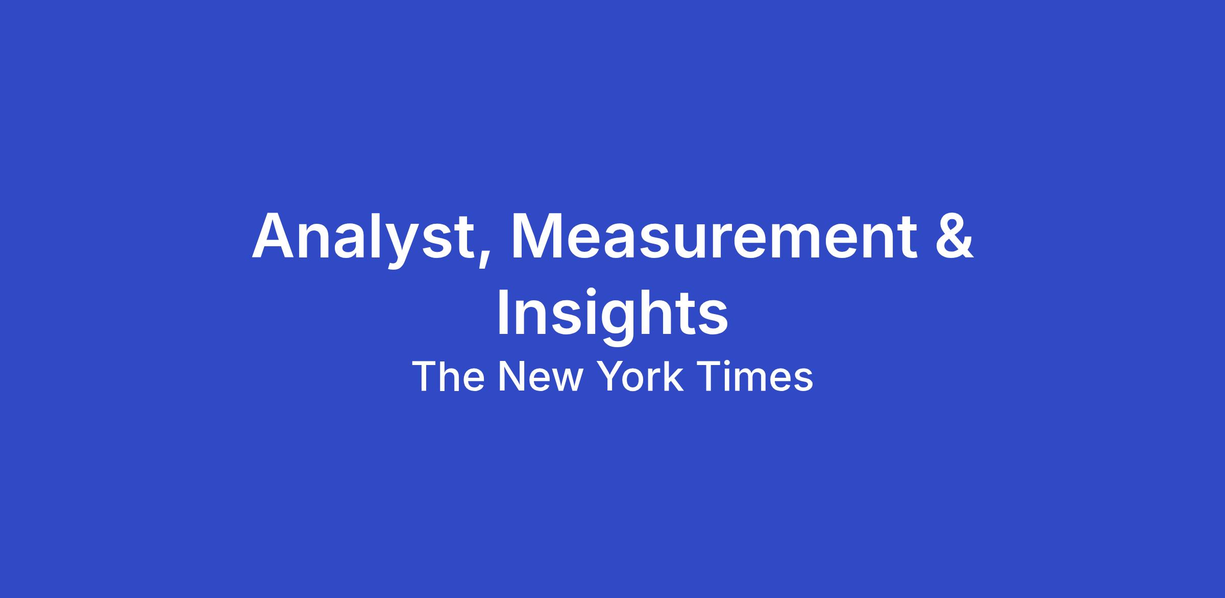 The New York Times' Advertising team is looking for an Analyst, Measurements and Insights who is experienced in analysis of campaign performance data and campaign stories for clients advertising. You will support the Measurement team within The New York Times Advertising. You will turn campaign results into applicable findings for clients by using first- and third-party campaign metrics. You will help identify opportunities, bring the strategy and ongoing output of insights, innovate processes, methodologies, and reporting, directly affecting future business.