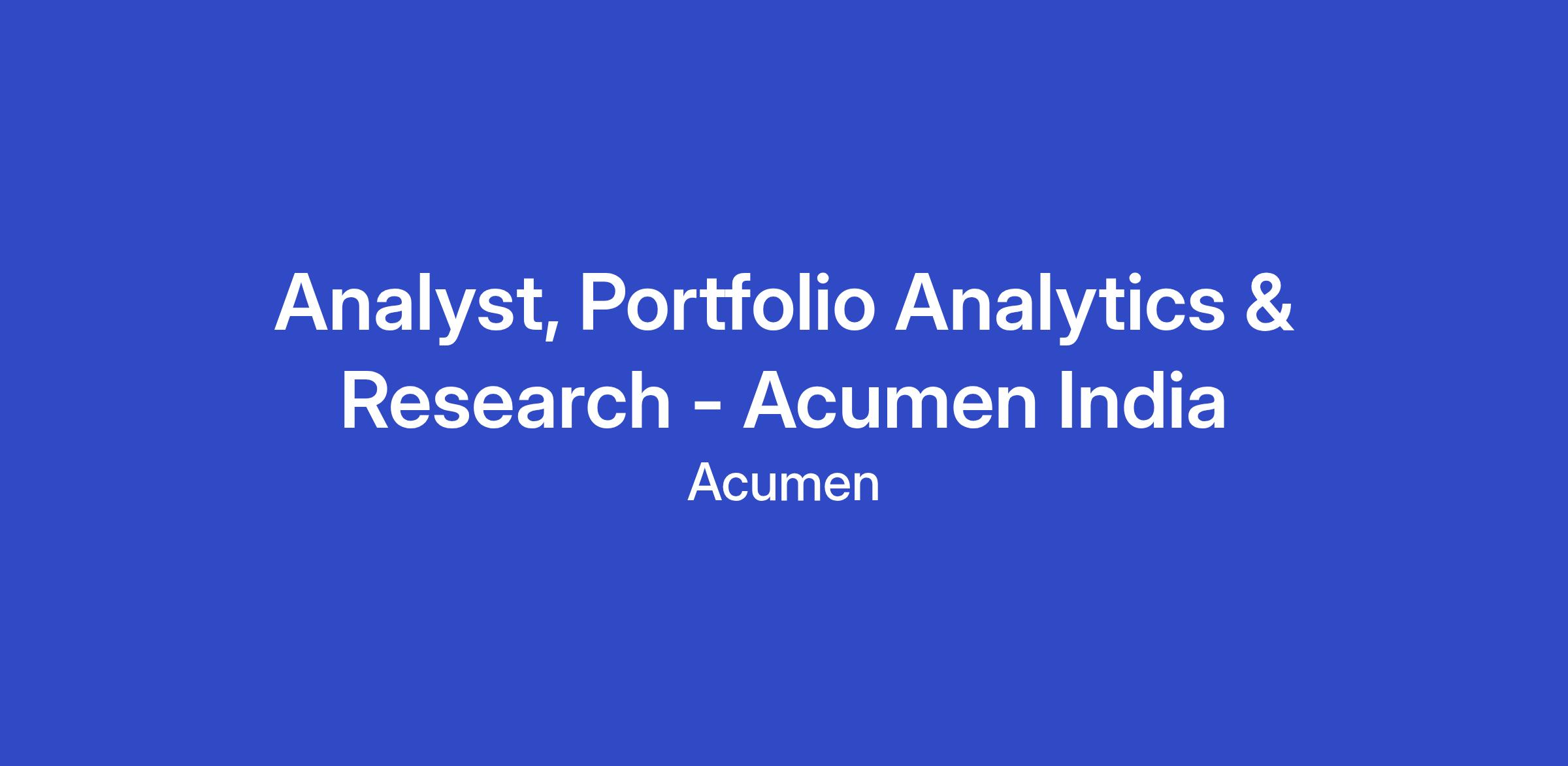 The Analyst will work closely with and support the Global Portfolio Analytics Lead to deliver high-quality portfolio analytics, market research, and investment process support across Acumen’s global portfolio. This role is responsible for executing core analytical work—such as portfolio performance analysis, risk and scenario analysis, market research, and data reporting—that informs investment decisions and portfolio management.