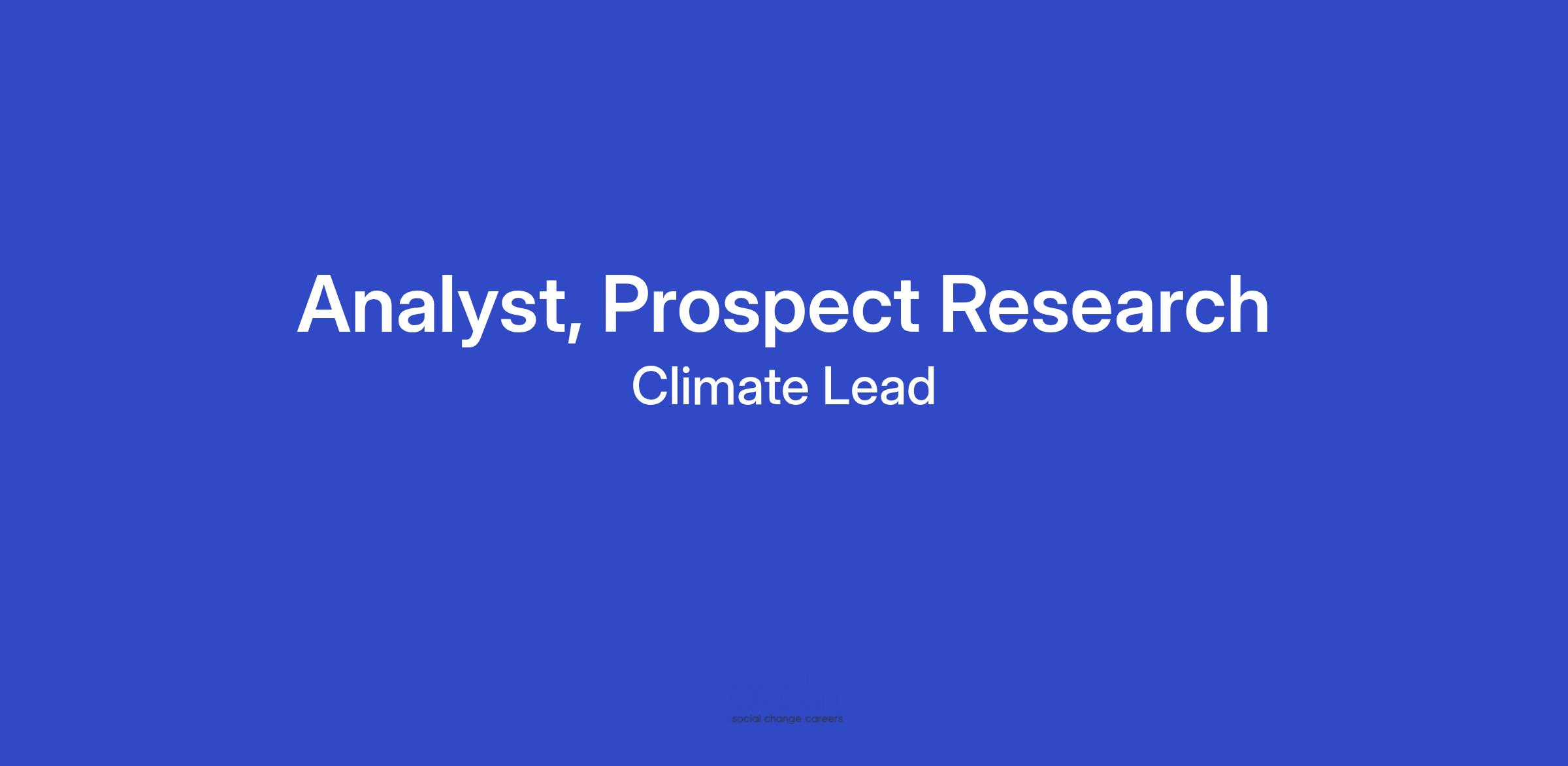 The Analyst, Prospect Research is instrumental in supporting the internal functions needed to mobilize Climate Lead’s prospect strategy. This role works in close coordination with the Director, Prospect Development. It is an important role that will contribute to Climate Lead’s aim to achieve its 2030 strategic goals.