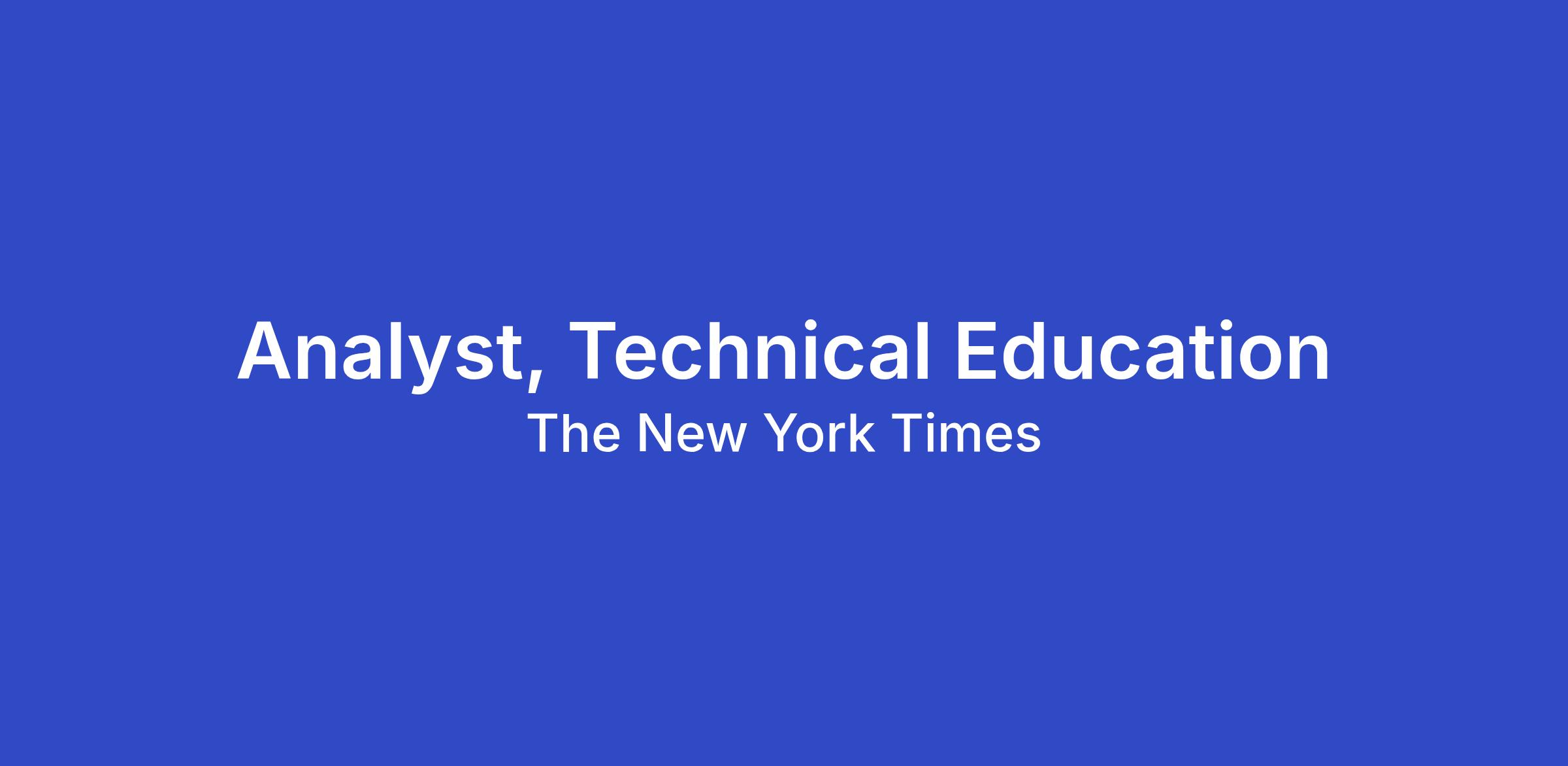 The New York Times is looking for a Technical Education Analyst to join our Technical Enablement team. You will focus on technical enablement and new technology, helping our global workforce navigate and adopt critical enterprise tools. You will be a liaison for projects—such as Generative AI—translating complex system updates into clear, relevant documentation and training. Our goal is to build a culture of technical literacy where every member of the staff feels empowered to use the latest company technology. This is a hybrid role based in New York City, with the expectation to come into the office on a semi-regular basis to meet with employees for in-person 1:1 and group training sessions.