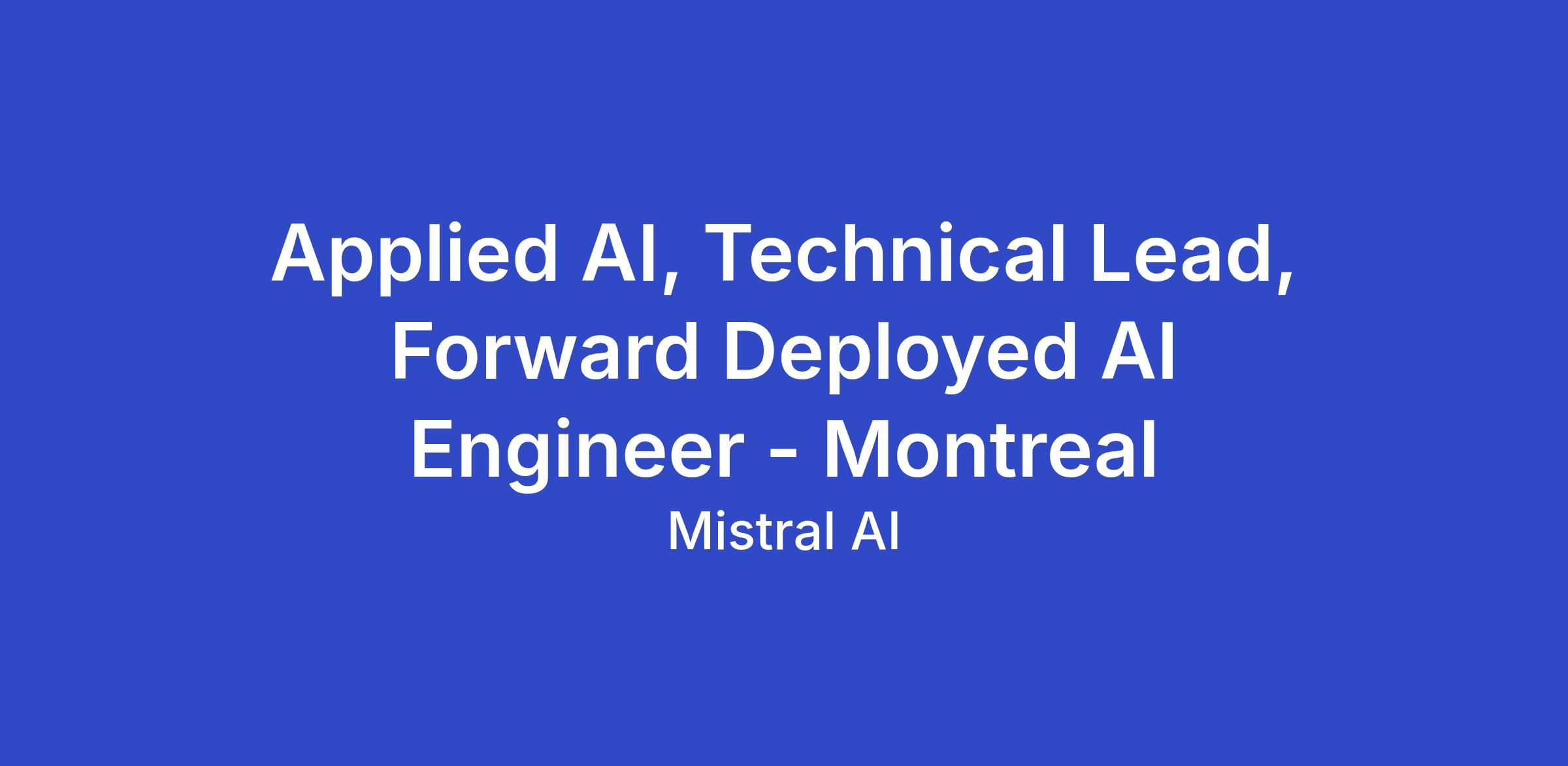 Mistral AI is seeking a Technical Lead, Applied AI to drive the technical strategy, execution, and delivery of complex AI solutions for our enterprise customers. In this role, you will lead a project teams of Applied AI Engineers, ensuring the successful deployment of Mistral AI products and the development of high-impact, scalable AI use cases.