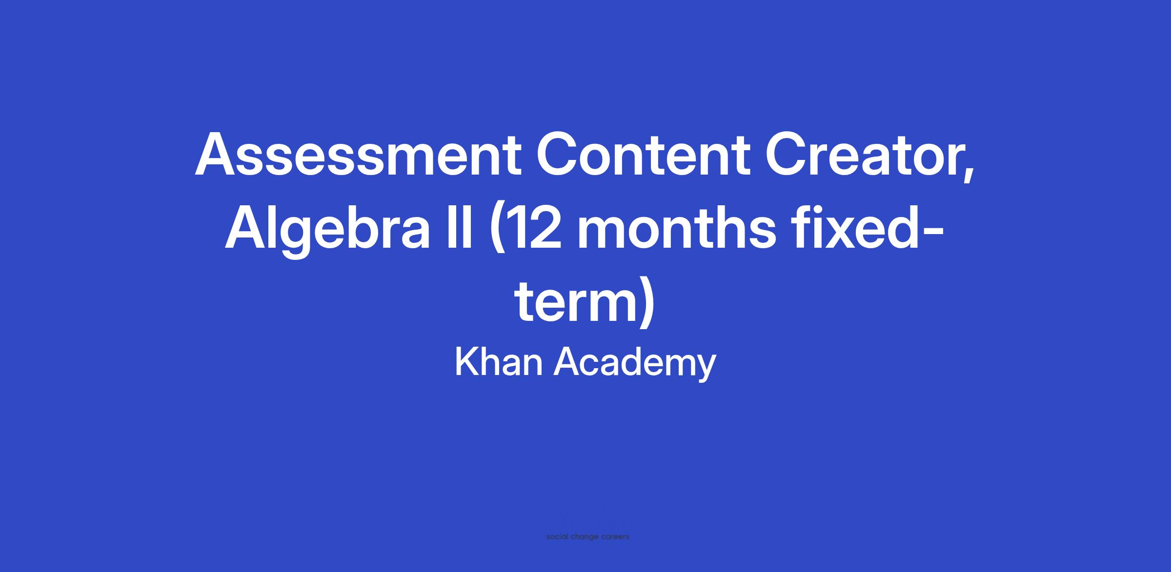 Khan Academy is seeking an experienced and versatile assessment content creator to serve as an HS Content Creator on the Assessments team. This is a fixed-term position with an expected term of 12 months. As an assessment content creator, you will contribute to the development of new, innovative K-12 assessments. The ideal candidates will possess deep knowledge of HS mathematics, common core and state standards, and assessment development best practices, and have a passion for teaching and learning.