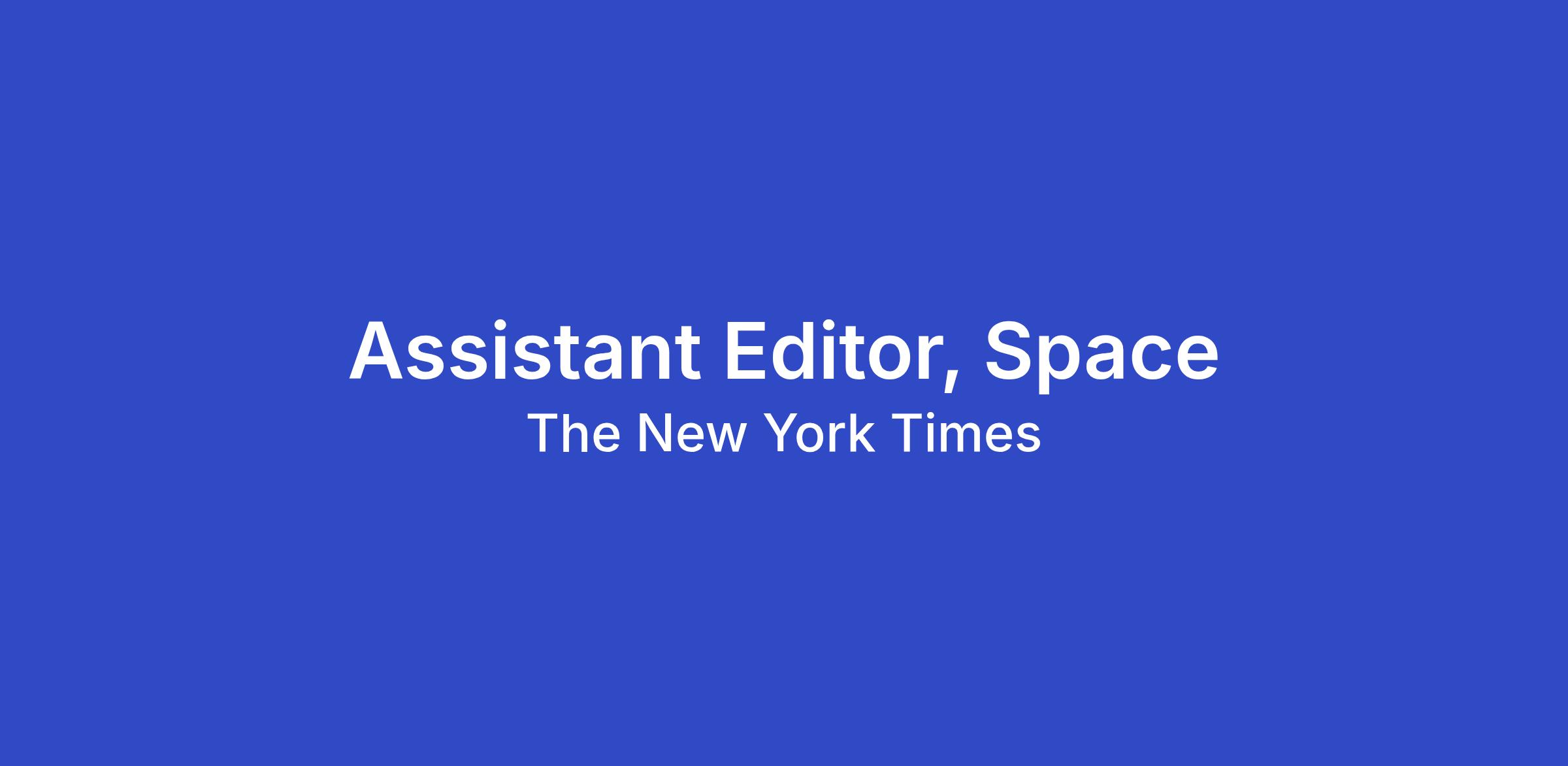 The New York Times is looking for an editor to manage its space coverage. The Times's large readership takes enormous interest in the Science desk's stories about space and astronomy — which include reporting on SpaceX's latest launches, NASA missions to Mars, meteorites falling to Earth, solar and lunar eclipses, powerful new telescopes studying cosmic mysteries and a growing collection of interstellar comets.