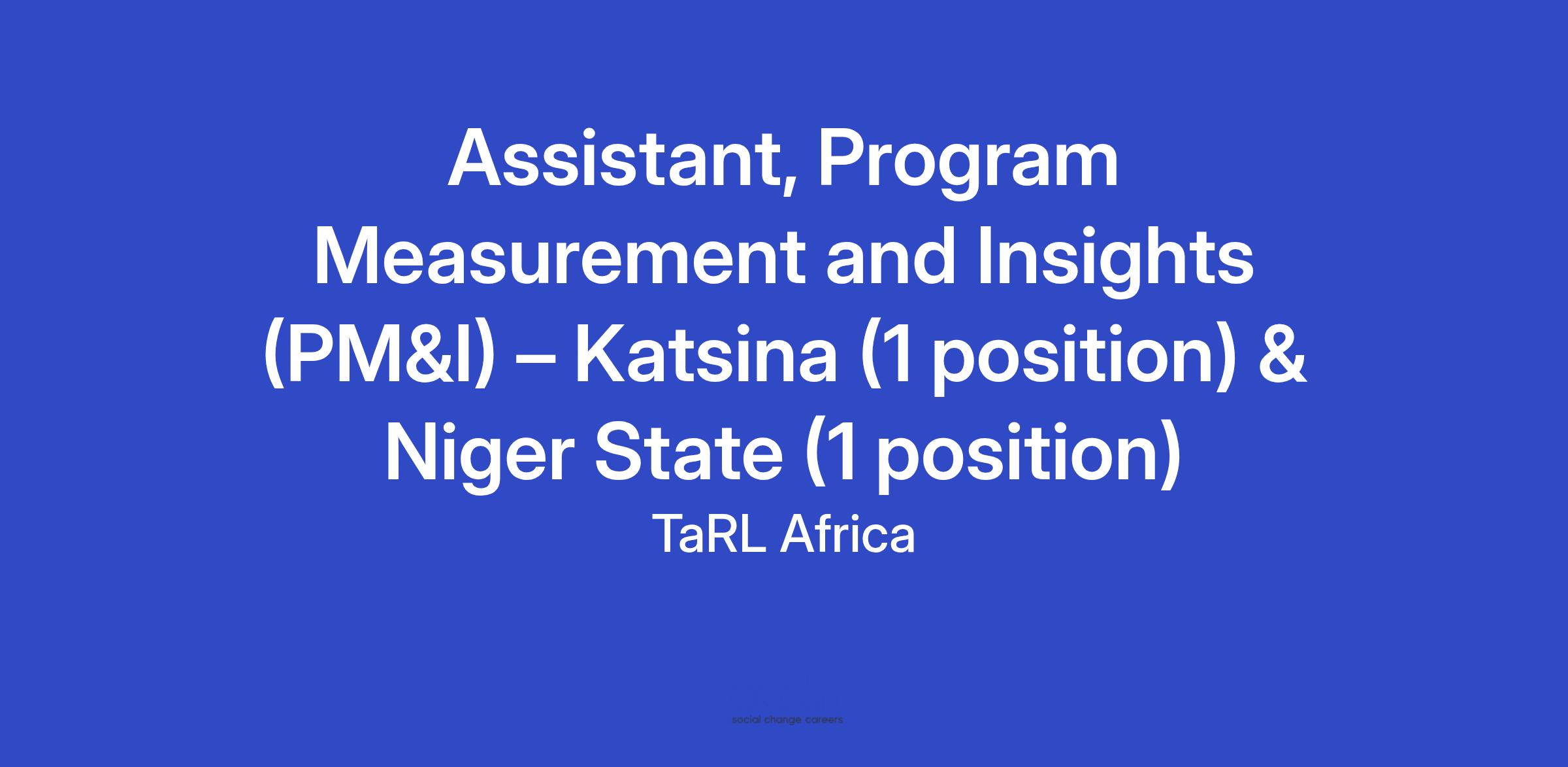 Position: Assistant, Program Measurement and Insights (PM&I) – Katsina (1 position) & Niger State (1 position)