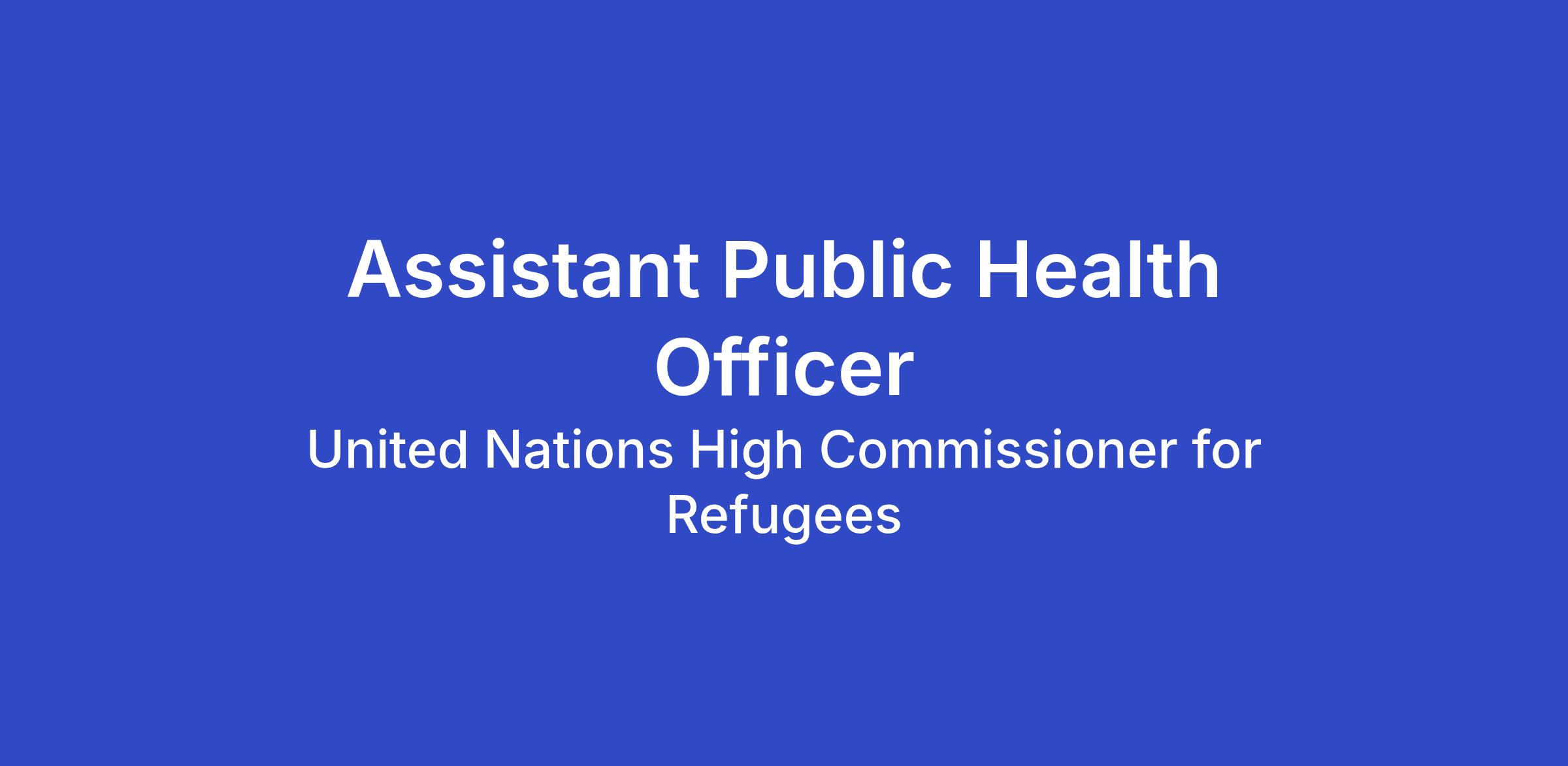 The Assistant Public Health Officer is a member of a multidisciplinary team and contributes to ensuring that UNHCR's public health programmes meet minimum UNHCR and global health standards in order to minimise avoidable morbidity and mortality among forcibly displaced and stateless persons and towards the achievement of the Sustainable Development Goals (SDGs).