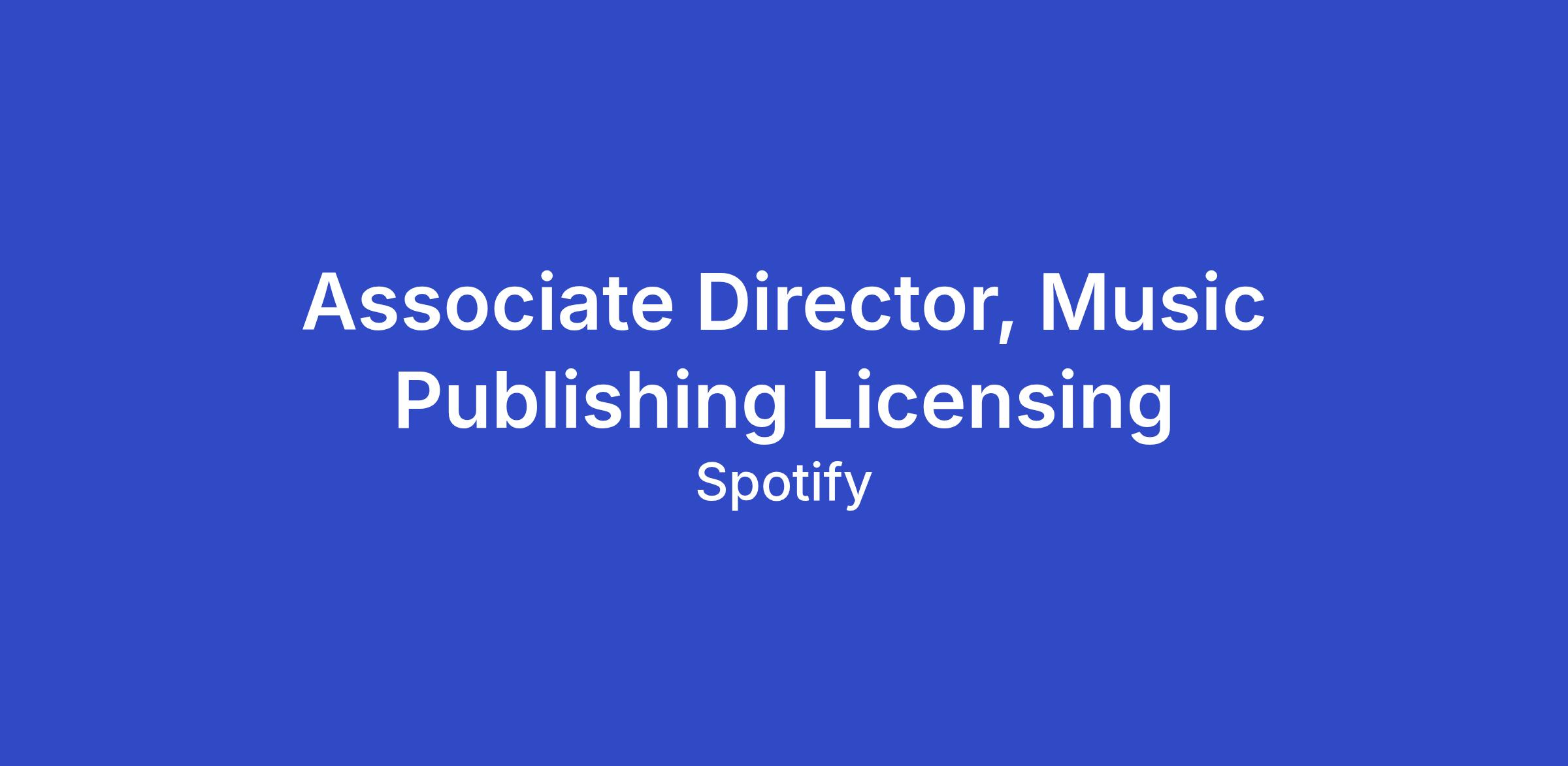 The Associate Director is responsible for existing and new Spotify licenses, establishing and maintaining key relationships with music publishing rights holders, and strategic and analytical support to help enable new business initiatives and developments. The right candidate will serve as an advocate and ambassador for the Spotify platform, whilst ensuring that our interests with music publishing rights holders are fully aligned to support the ongoing growth and development of the music publishing community and Spotify.