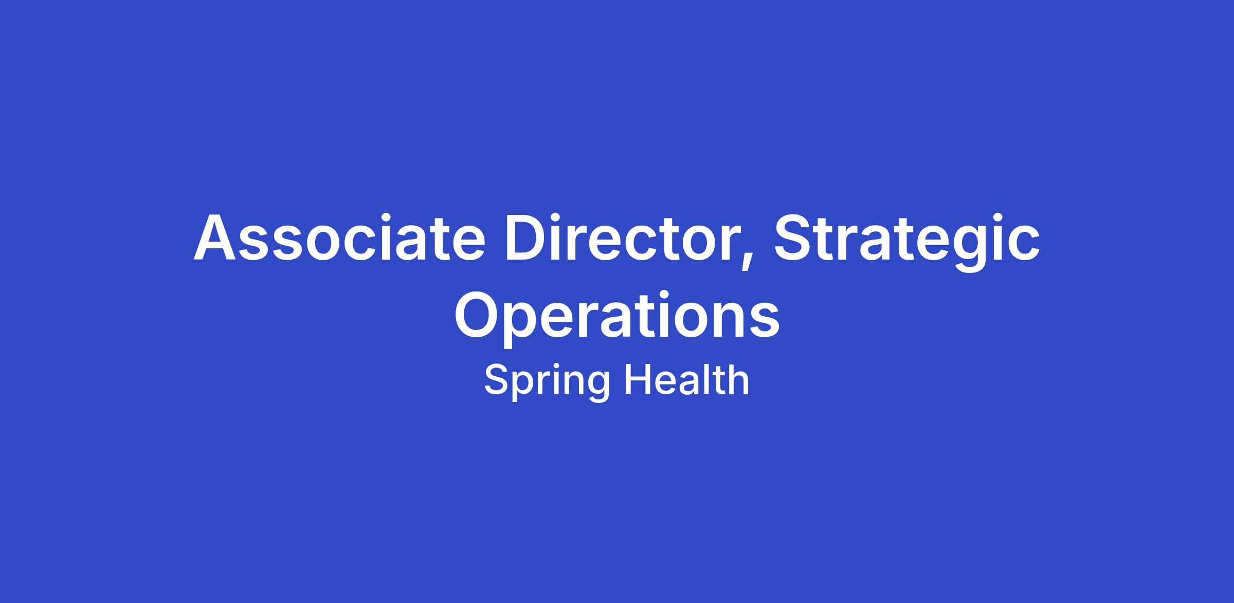 Reporting to the Senior Director, Strategic Operations, the Associate Director of Strategic Operations will focus on driving operational rigor, scalability, and gross margin expansion across the business. This leader will be embedded within the operations organization but partner closely with Finance, Product, Revenue, Clinical, and Customer teams to improve how we deliver care - ensuring we do so efficiently, sustainably, and at scale.