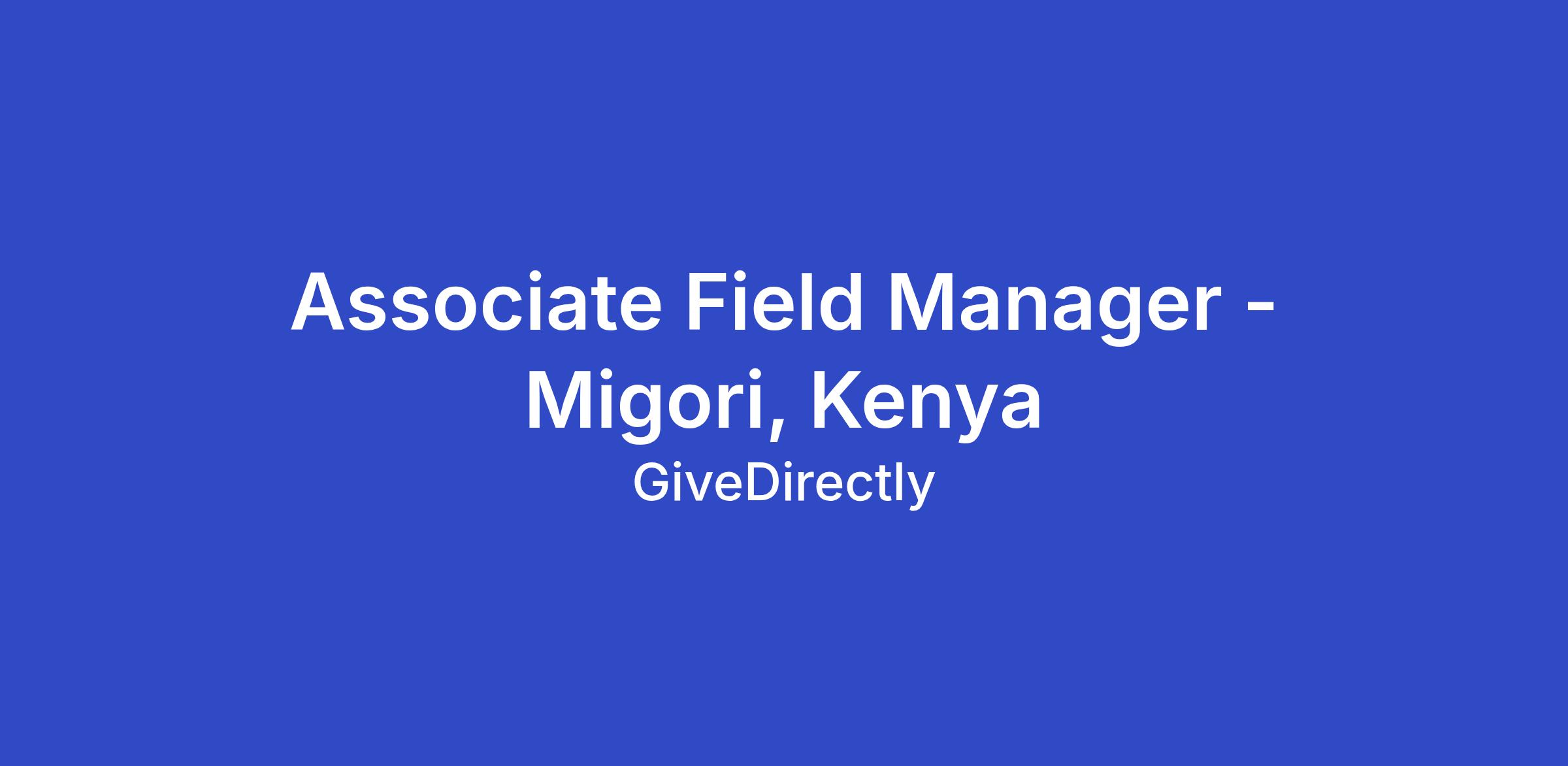 The Associate Field Manager (AFM) plays a central role in ensuring GiveDirectly delivers a gold-standard experience for recipients while operating efficiently. Based in Migori County, the AFM must have in-depth knowledge of the local context, including community dynamics, security nuances, and logistical realities.