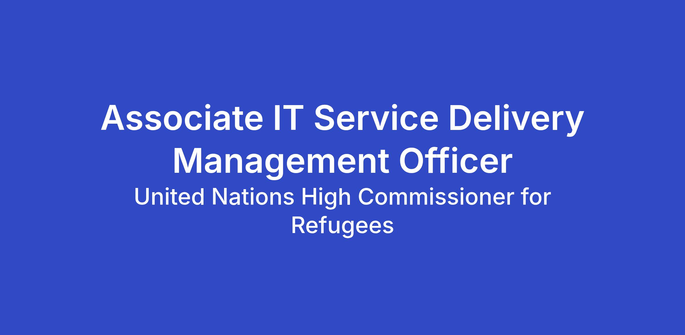 The Associate IT Service Delivery Management Officer is responsible for ensuring that IT systems and services are available and delivered consistently, reliably, and effectively. The incumbent oversees day-to-day operations and coordinates the work of multiple support groups, both internal to UNHCR, as well as, Managed Service Providers (MSPs) and ensures the various MSPs (both local and corporate) and UNHCR IT staff under their supervision deliver efficient and effective systems and services in accordance to contractual obligations and best practices. Understanding the current and future needs, the incumbent ensures that the IT requirements are understood and that offices within their respective area of responsibility (AoR) have adequate IT Services to maintain communications across the organization and have the IT tools necessary to support their work.