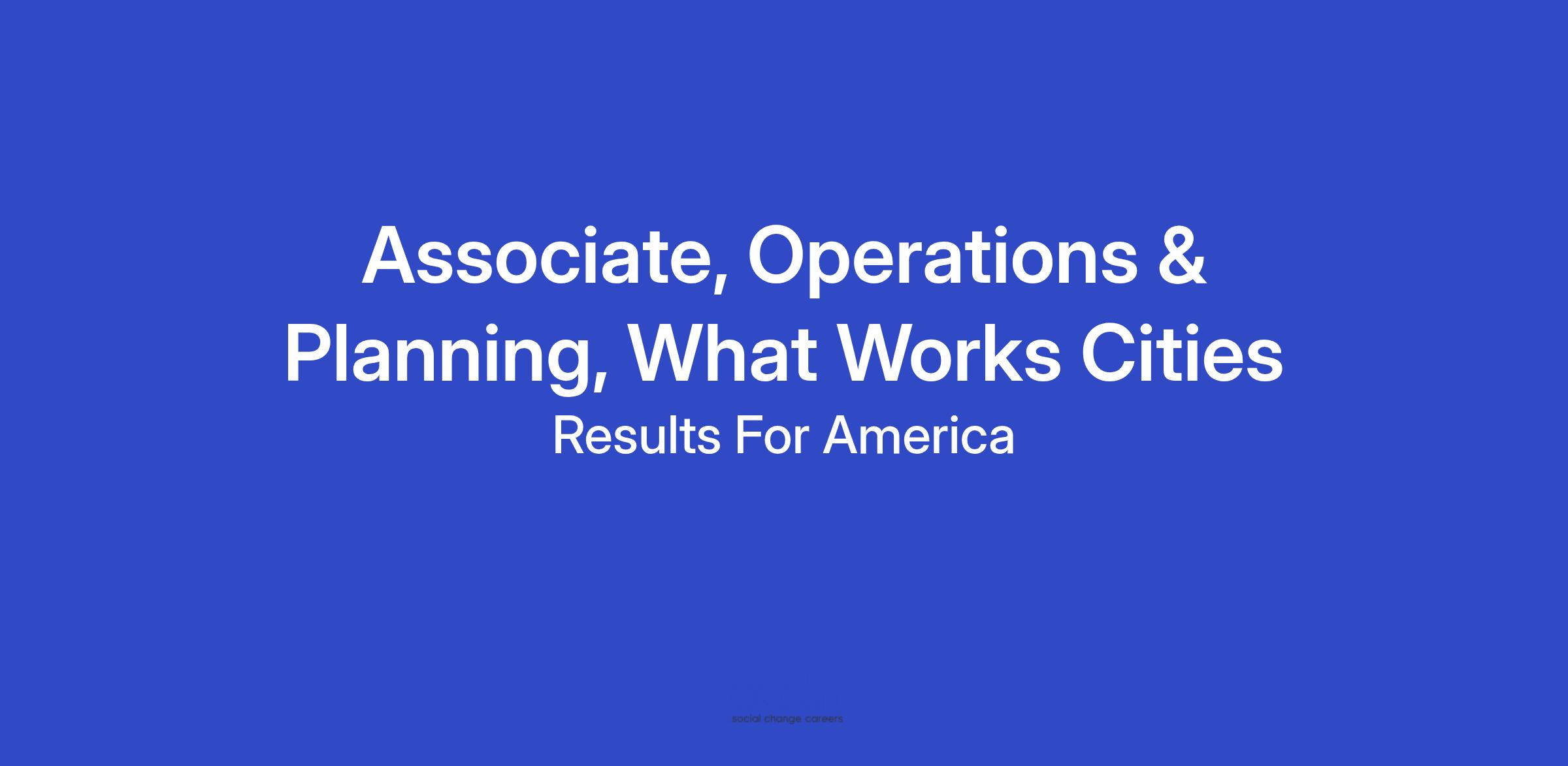 Role: Associate, Operations & Planning, What Works Cities