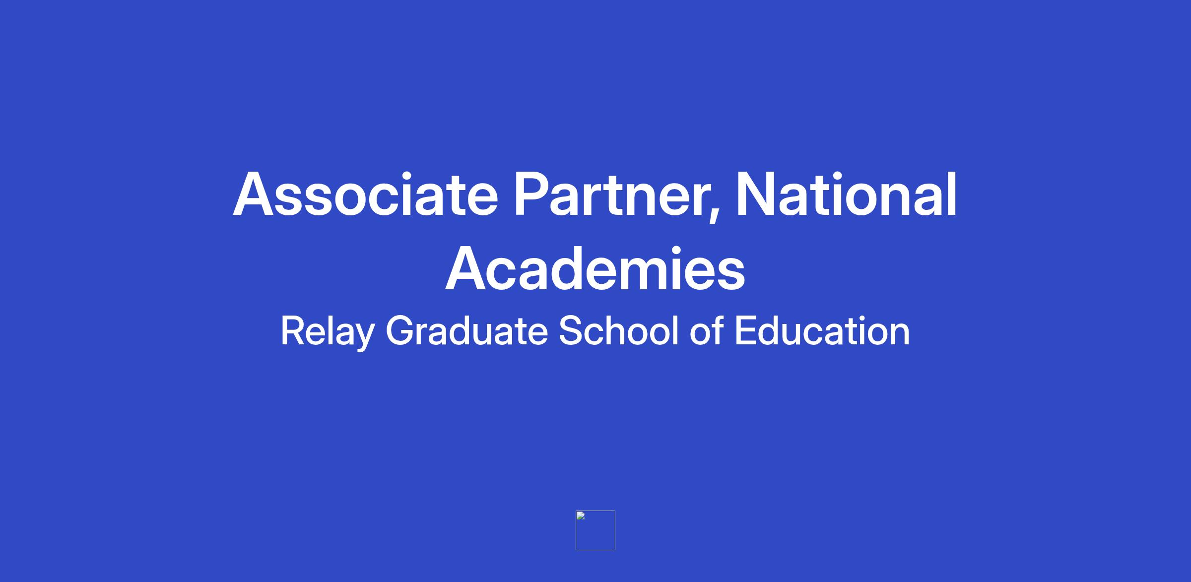 The Professional Education team designs and delivers transformative learning experiences for PK–12 educators and leaders, contributing directly to Relay’s mission of ensuring all students are taught by excellent educators. The Associate Partner, National Academies plays a critical role to support Relay’s flagship fellowship programs for school and system leaders, including the National Principal Academy Fellowship (NPAF), the National Principal Supervisors Academy (NPSA), and the National Instructional Professional Development (ILPD) program. Reporting to the Managing Partner, National Academies, this leader collaborates with the team on vision, strategic planning, data analysis and action planning, driving toward ambitious goals for participant satisfaction and belonging, implementation readiness, and improved student outcomes. A detail-oriented, thorough leader, the Associate Partner supports best-in-field program management to ensure Relay’s National Academies continue to be recognized nationally for their excellence and impact.
