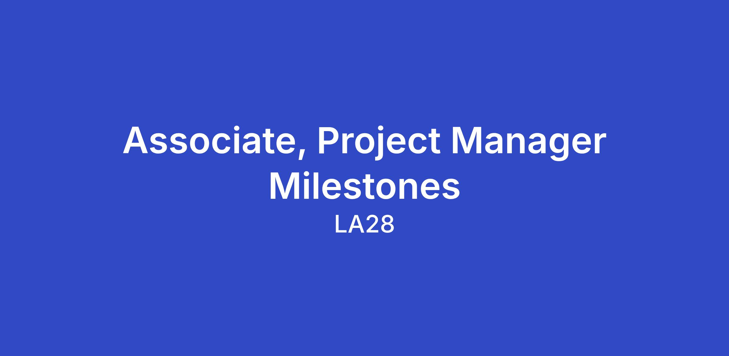 Associate, Project Manager Milestones