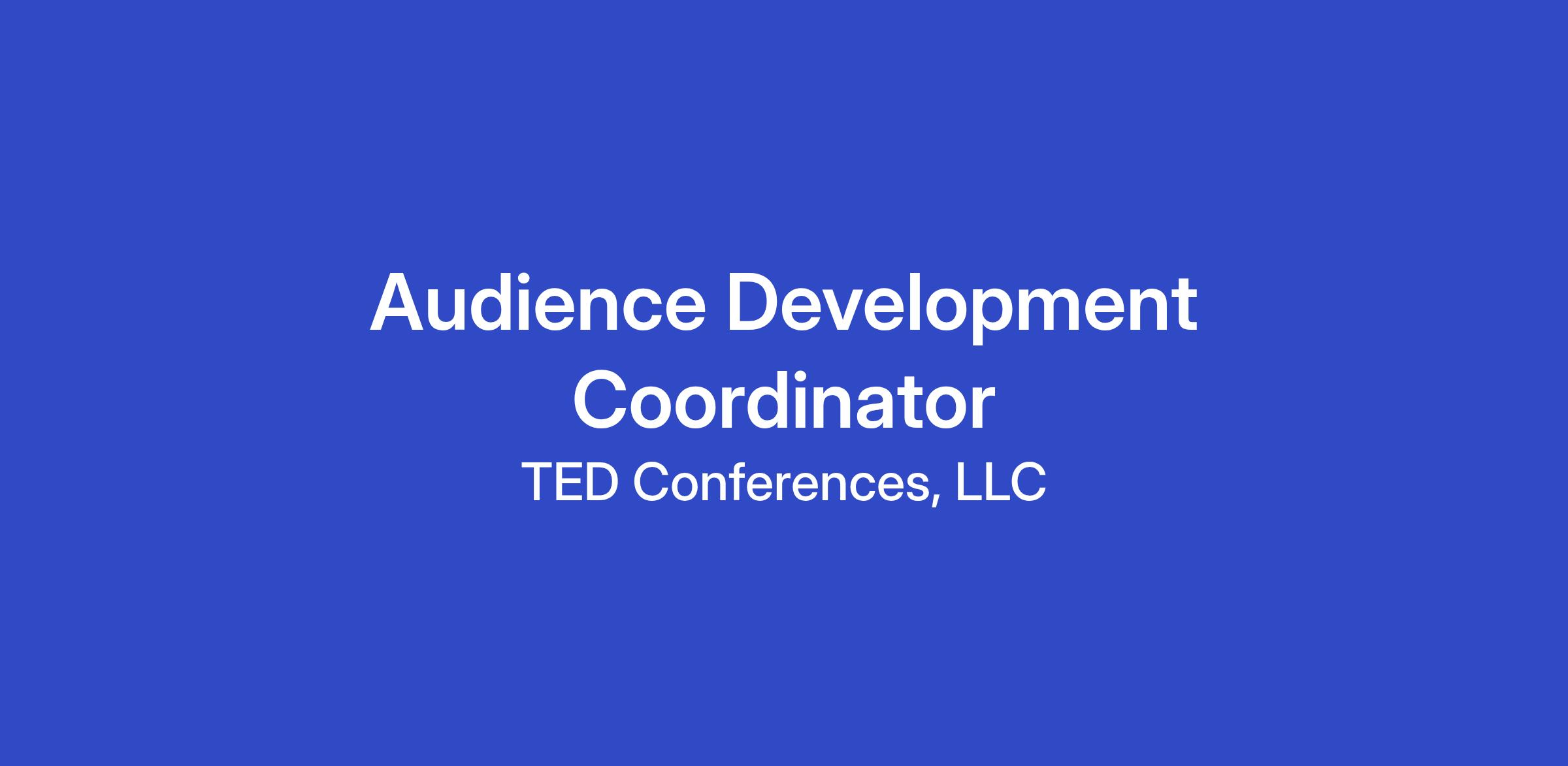 The Audience Development Coordinator supports TED’s strategic communities by drafting event communications, coordinating event operations, and keeping cross-functional workstreams on track across TED conferences and year-round community programming (virtual and in-person). You’ll help deliver outstanding, audience-tailored experiences for donors, newcomers, and other community groups.