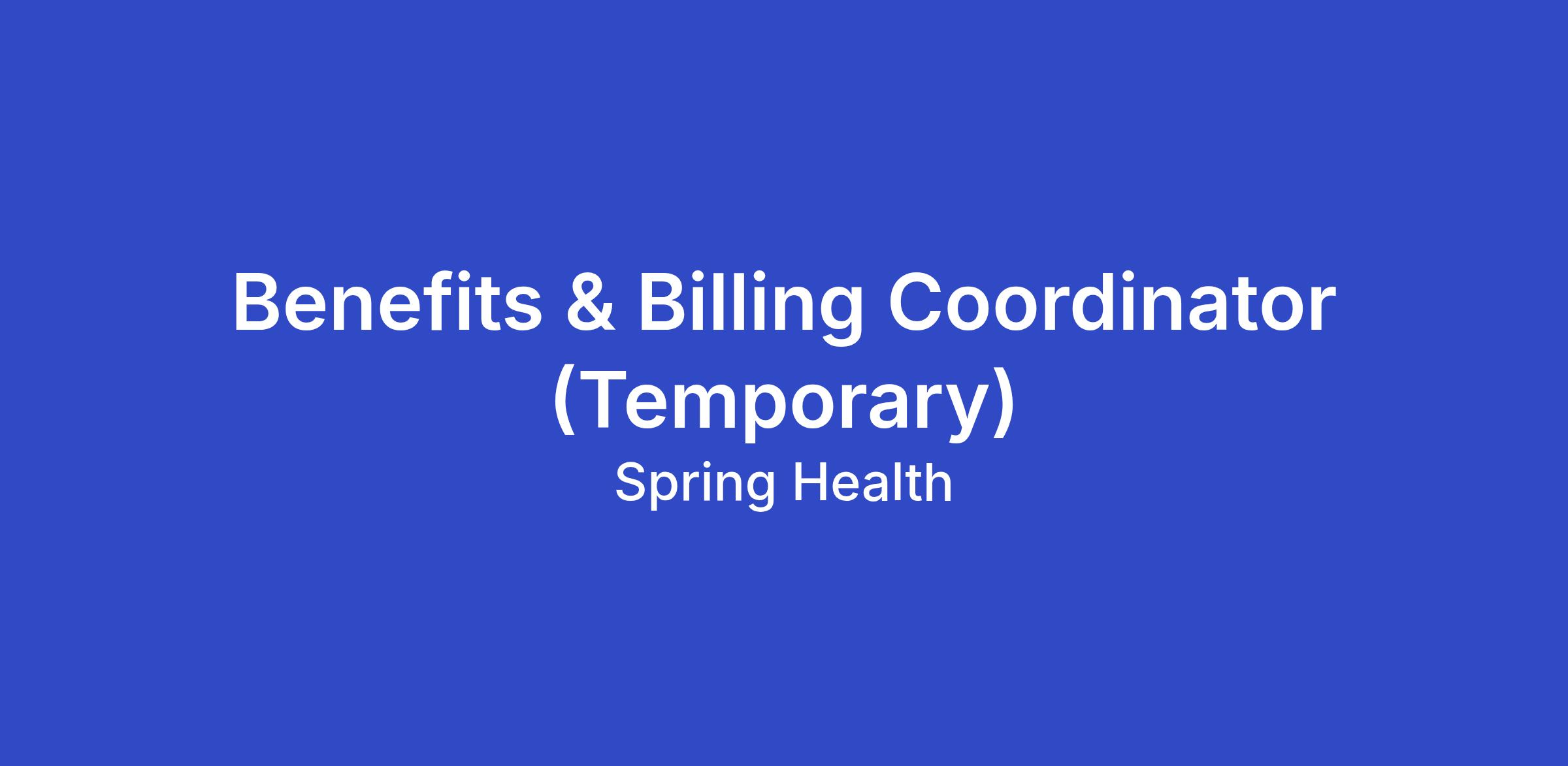 We are looking for a Benefits & Billing Coordinator (Temporary), to join our Care Support team! The Care Support Team maintains a dedicated focus on ensuring members and providers are incredibly satisfied with the Spring Health platform by coordinating various aspects of care delivery. The Benefits & Billing Coordinator (Temp) will serve as the primary point of contact for our members–Providing exceptional support and assistance through multiple communication channels, including but not limited to, inbound calls and emails. The ideal candidate ensures timely and accurate service that exceeds our member’s expectations. This is a non-clinical support role. This is a temporary position with the opportunity to extend or convert to full-time based on performance and business needs. As a temporary (contract) position, this role is not eligible for any non-statutory benefits. Flexibility required to support occasional shift adjustments (depending on business needs), ability to work 1 weekend per month and at least 4 holidays per year. Advance notice will be provided when possible. This remote position reports to the Care Support Team Lead.