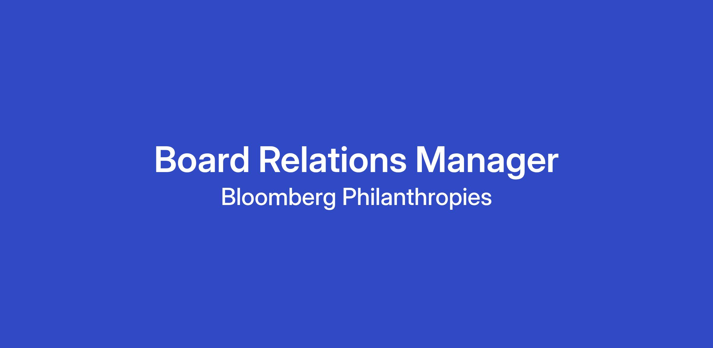 We are seeking a Board Relations Manager to serve as a strategic partner and key liaison between the board and Bloomberg Philanthropies’ senior leadership ensuring that board member engagement is purposeful, proactive, and compelling.