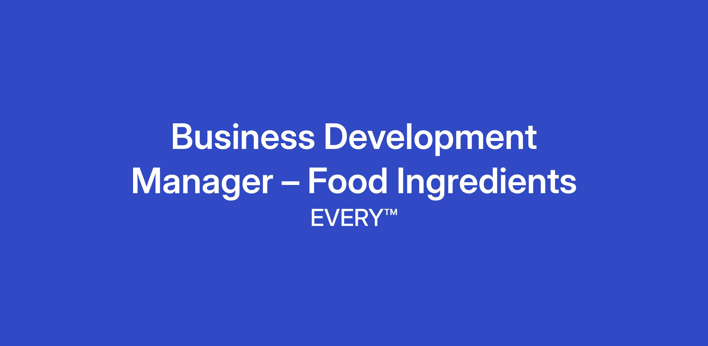 Business Development Manager – Food Ingredients