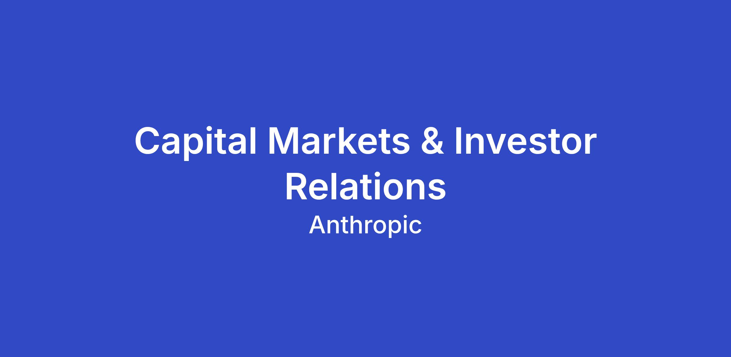 In this role, you'll leverage your expertise across capital markets and financial strategy to drive fundraising activities, build robust investor relations frameworks, and lay the groundwork for long-term financial flexibility. You'll also support selective corporate development opportunities that align with our strategic priorities. The ideal candidate brings deep capital markets experience, strong analytical capabilities, and exceptional relationship-building skills to help guide Anthropic through its next phase of growth while maintaining our commitment to responsible AI development.