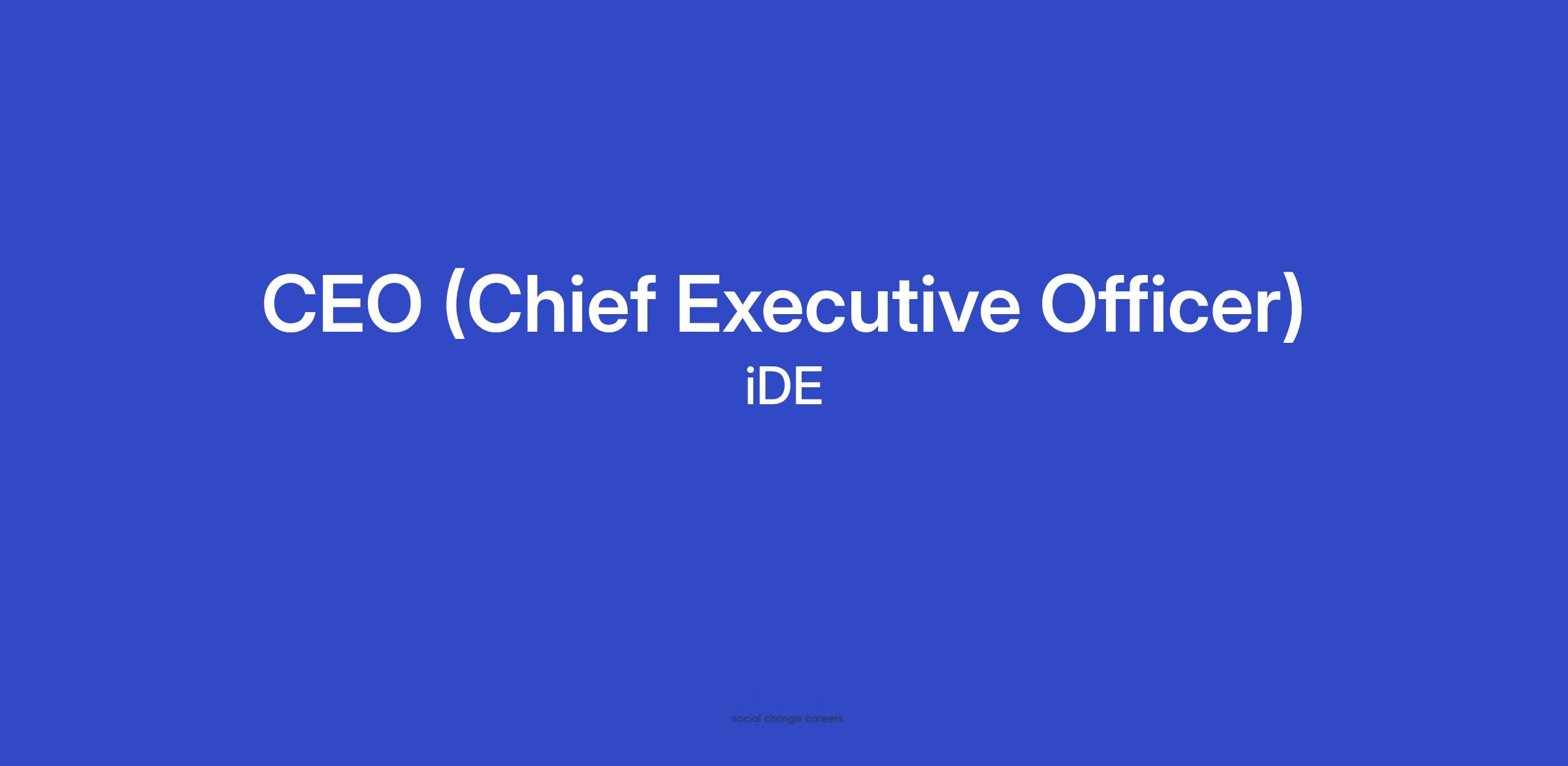 The Chief Executive Officer of iDE is responsible for the overall vision, leadership, and management of the organization. Reporting directly to the Board of Directors, the CEO ensures iDE achieves its mission, advances its strategy, and sustains its financial health and organizational culture.