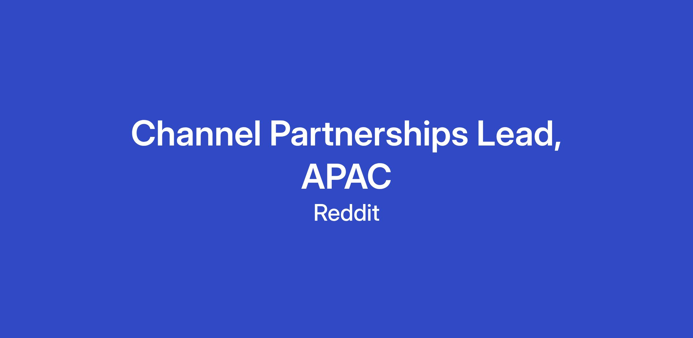 We are looking for a talented sales lead to grow and develop our Channel Partner Sales business in the APAC region. You will join a team of Partner Managers who work hand in hand with our global reseller partners to successfully launch and expand Reddit in new international markets. We’re looking for someone with deep market knowledge from years of navigating the digital marketing industry within these regions. The ideal person for the role has experience within the Partner Sales ecosystem and has had proven success with coaching, motivating, educating, and co-pitching partner sales teams to achieve set revenue targets. You would be a key pillar to Reddit’s business strategy as we forge world-class global partnerships with our Channel Partners and regional brands.
