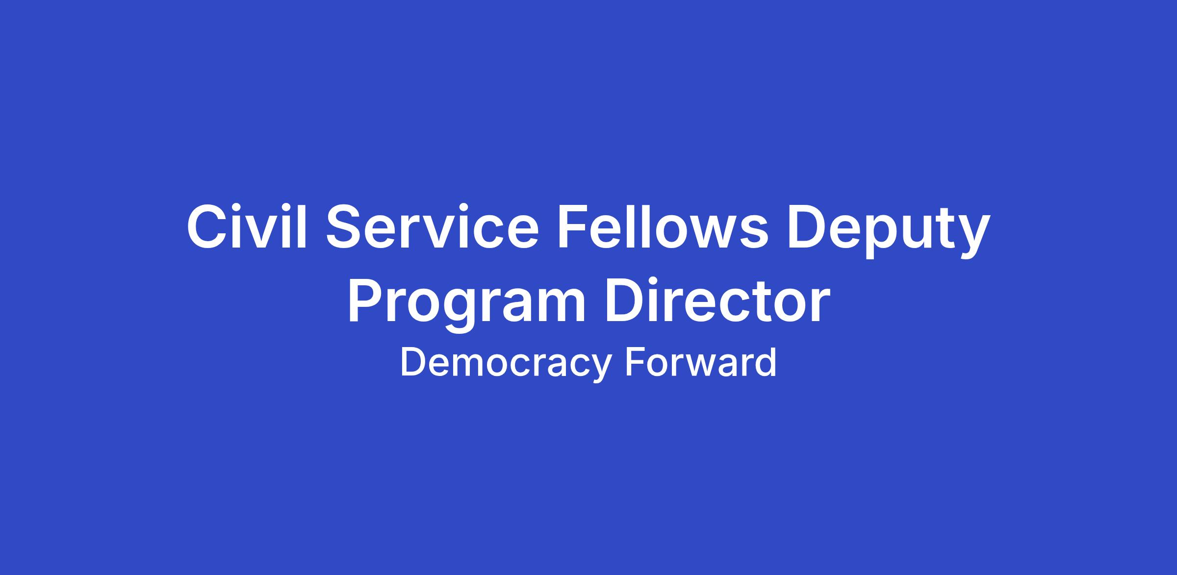 Are you a strong program manager with a passion for strengthening, supporting, and advocating for a vibrant, capable, and independent civil service? If so, Democracy Forward Foundation (“Democracy Forward”) is hiring a Civil Service Fellows Deputy Program Director to join our team. The Civil Service Fellows Deputy Program Director (“Deputy Director”) will support management and oversight of the Civil Service Fellows Program - a flagship initiative of Civil Service Strong at Democracy Forward. Designed in response to escalating threats to the professional, nonpartisan civil service, the fellowship activates former federal employees as researchers, storytellers, and strategic organizers to build momentum for rebuilding and reforming the federal workforce. The inaugural cohort of fellows will document how attacks on the federal workforce have been felt most acutely by people in America, and they will develop and incubate innovative work to inform future policymaking and to rebuild government capacity.