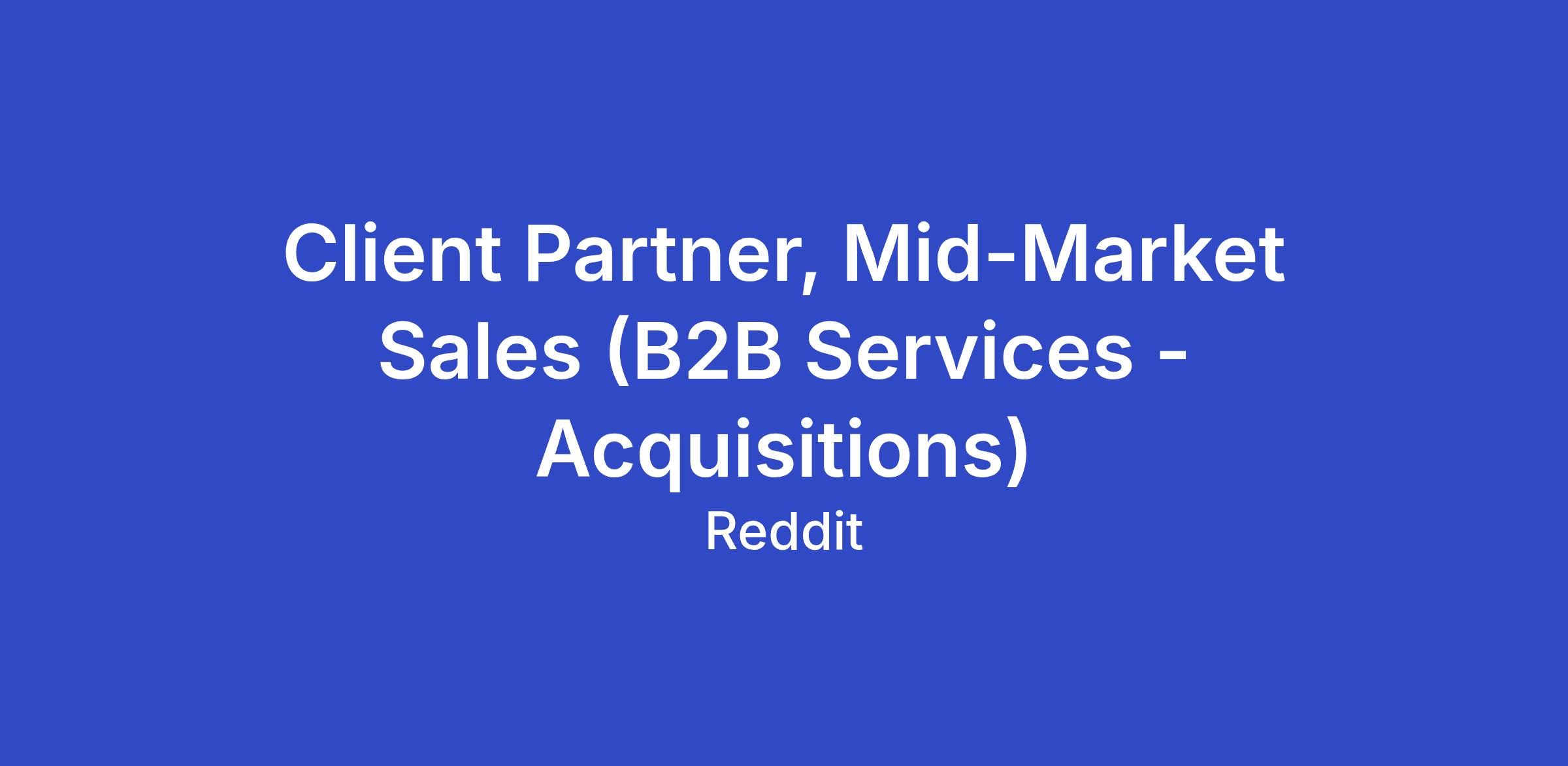 We're looking for a sharp, positive, and motivated self-starter to join our Mid Market Acquisitions team in New York! In addition to laying the foundation of the team, the Client Partner will be responsible for prospecting and establishing net-new partnerships with key brands and ensuring they meet their business objectives using Reddit's advertising suite.