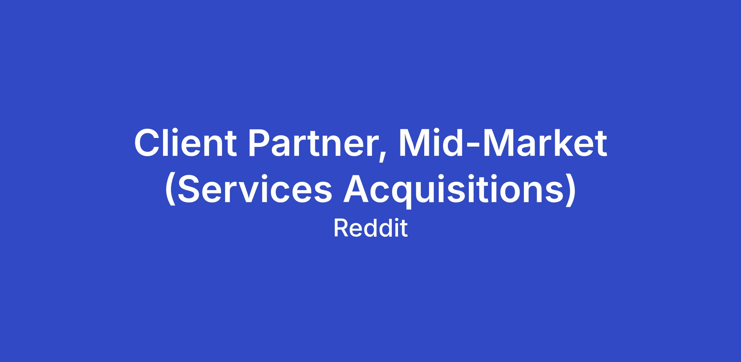 We're looking for a sharp, positive, and motivated self-starter to join our Mid Market Acquisitions team in Los Angeles! In addition to laying the foundation of the team, the Client Partner will be responsible for prospecting and establishing net new partnerships with key brands and ensuring they meet their business objectives using Reddit's advertising suite.