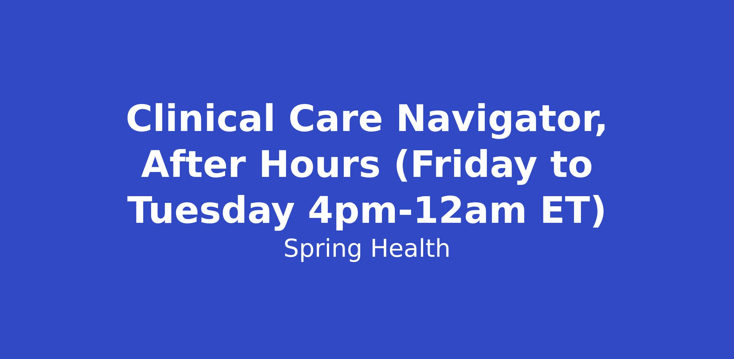 Clinical Care Navigator, After Hours (Friday to Tuesday 4pm-12am ET)
