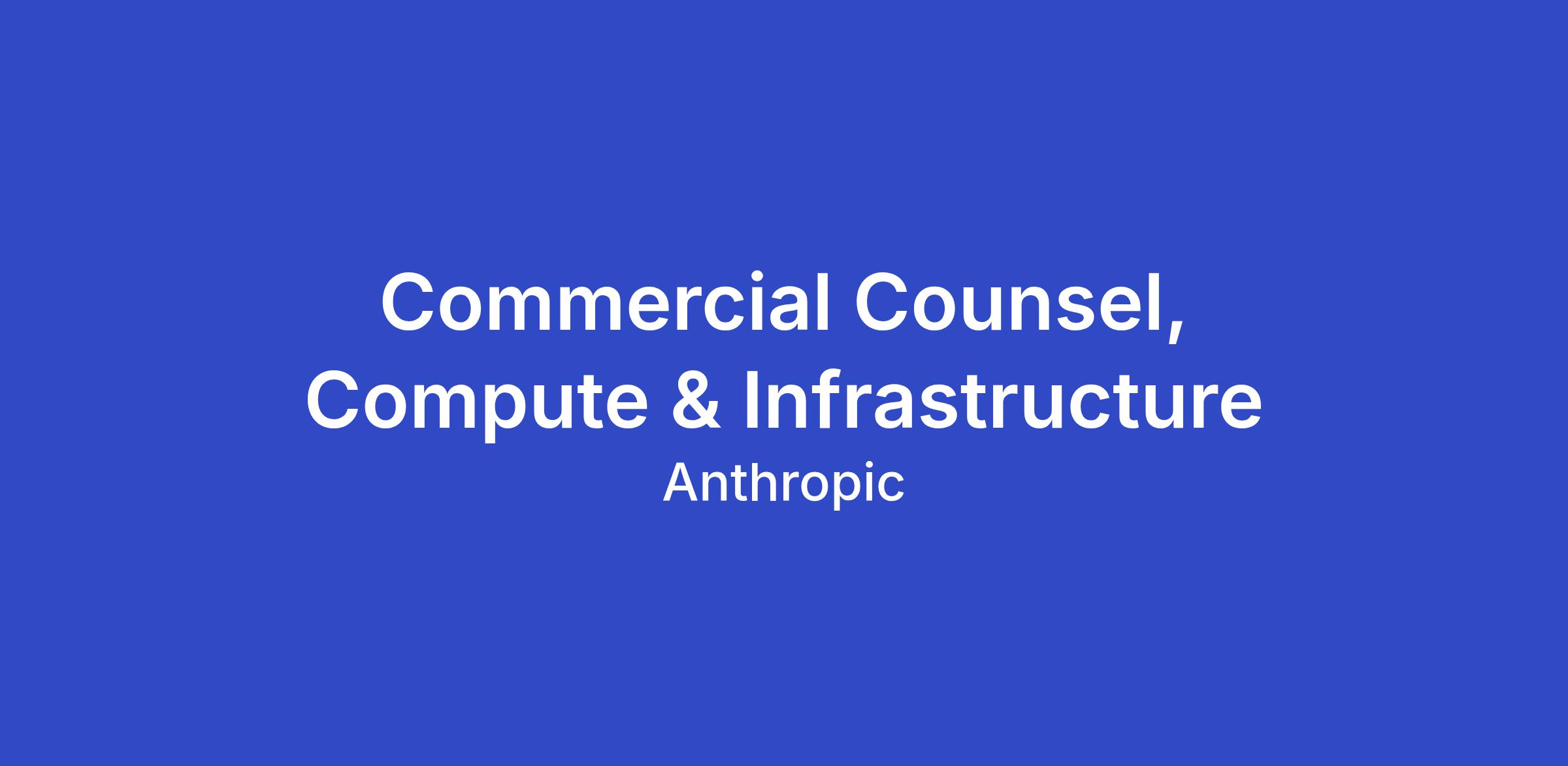 As a Commercial Counsel for Compute and Infrastructure at Anthropic, you'll lead legal execution for Anthropic's infrastructure transactions. These could span the spectrum of server rack compute, networking, semiconductor procurement and development, robotics, manufacturing and supply chain operations, direct datacenter leases, construction agreements, energy procurement, data center operations and the financing structures that enable infrastructure investments at massive scale. You'll work in close partnership with Anthropic teammates in Frontier Legal, Security, Litigation and Public Policy in addition to specialized outside counsel, serving as the in-house coordinator who ensures external work product aligns with Anthropic's commercial objectives and integrates with our overall compute strategy.