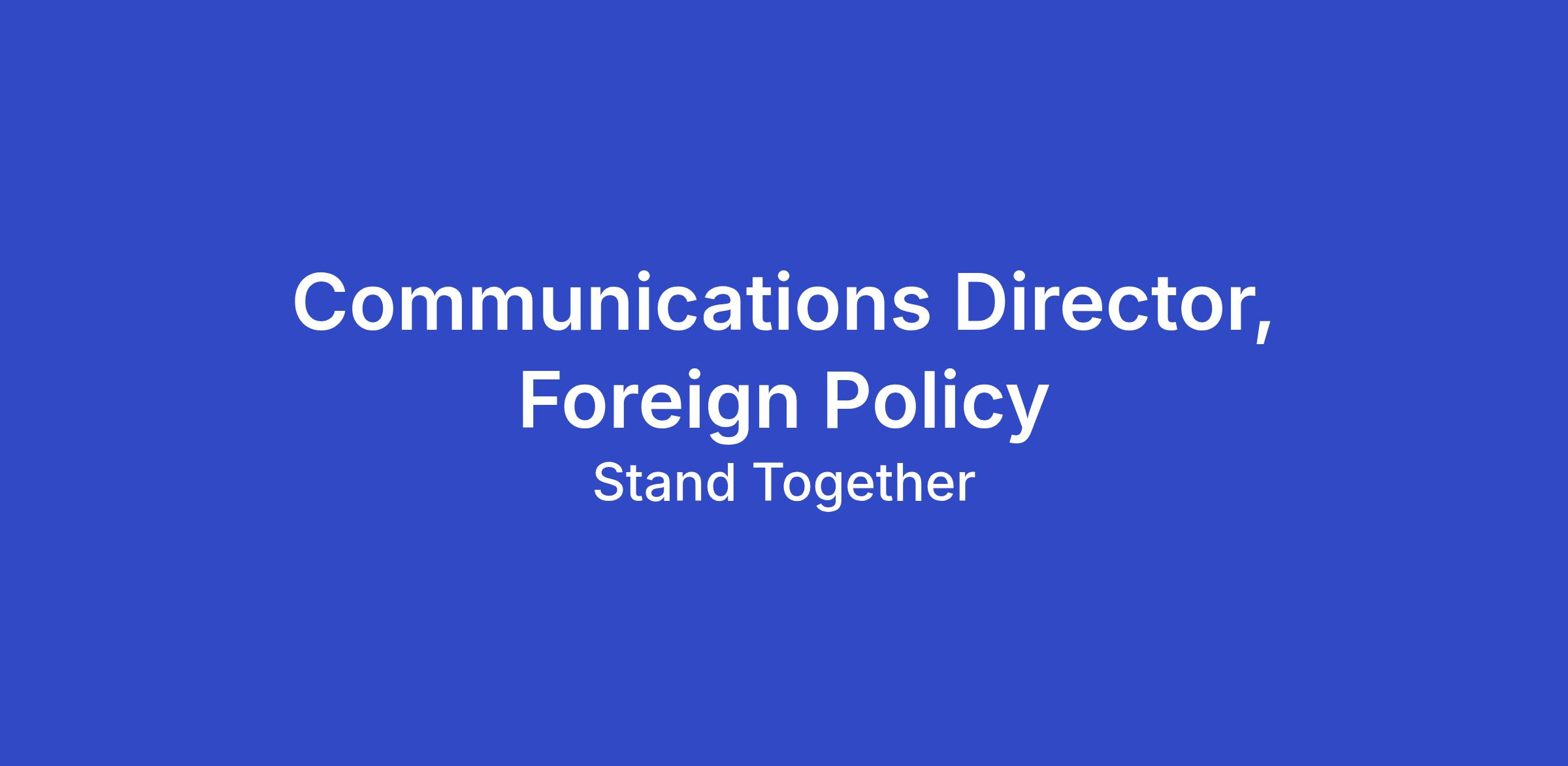 The Communications Director, Foreign Policy & Concerned Veterans for America (CVA) leads high-impact communications and earned media strategies advancing foreign policy initiatives rooted in realism and restraint. This role drives integrated efforts to expand CVA’s influence across federal, state, and grassroots audiences while supporting a growing portfolio that includes veteran affairs, foreign policy, economic, and energy issues. The position is central to shaping CVA’s public voice following a major brand refresh and strategic expansion.