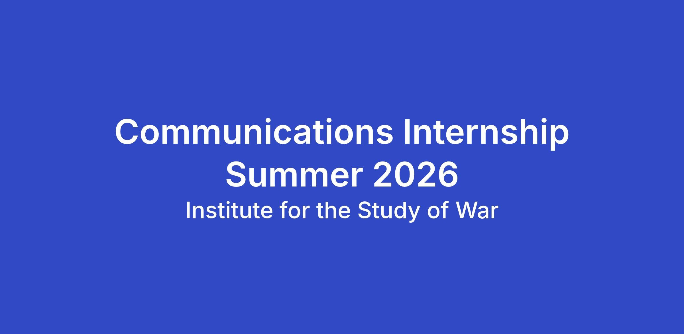 Communications Internship: ISW’s External Relations Team offers a unique opportunity to candidates interested in learning more about non-profit communications with an eye towards national security. Interns will hone their skills supporting a variety of communications functions, including media relations and monitoring, writing and copyediting, social media monitoring and management, digital content creation, and media research.
