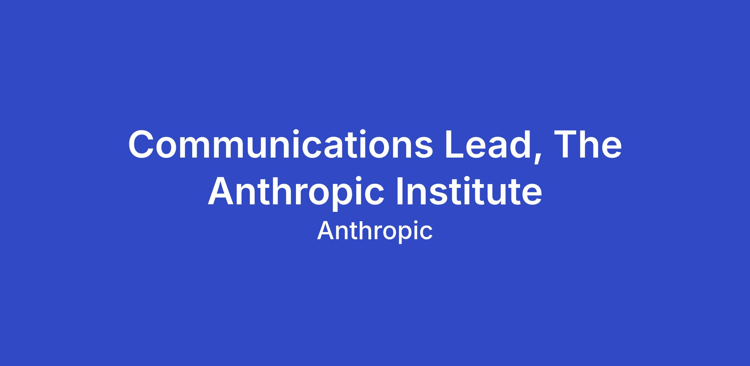 Communications Lead, The Anthropic Institute