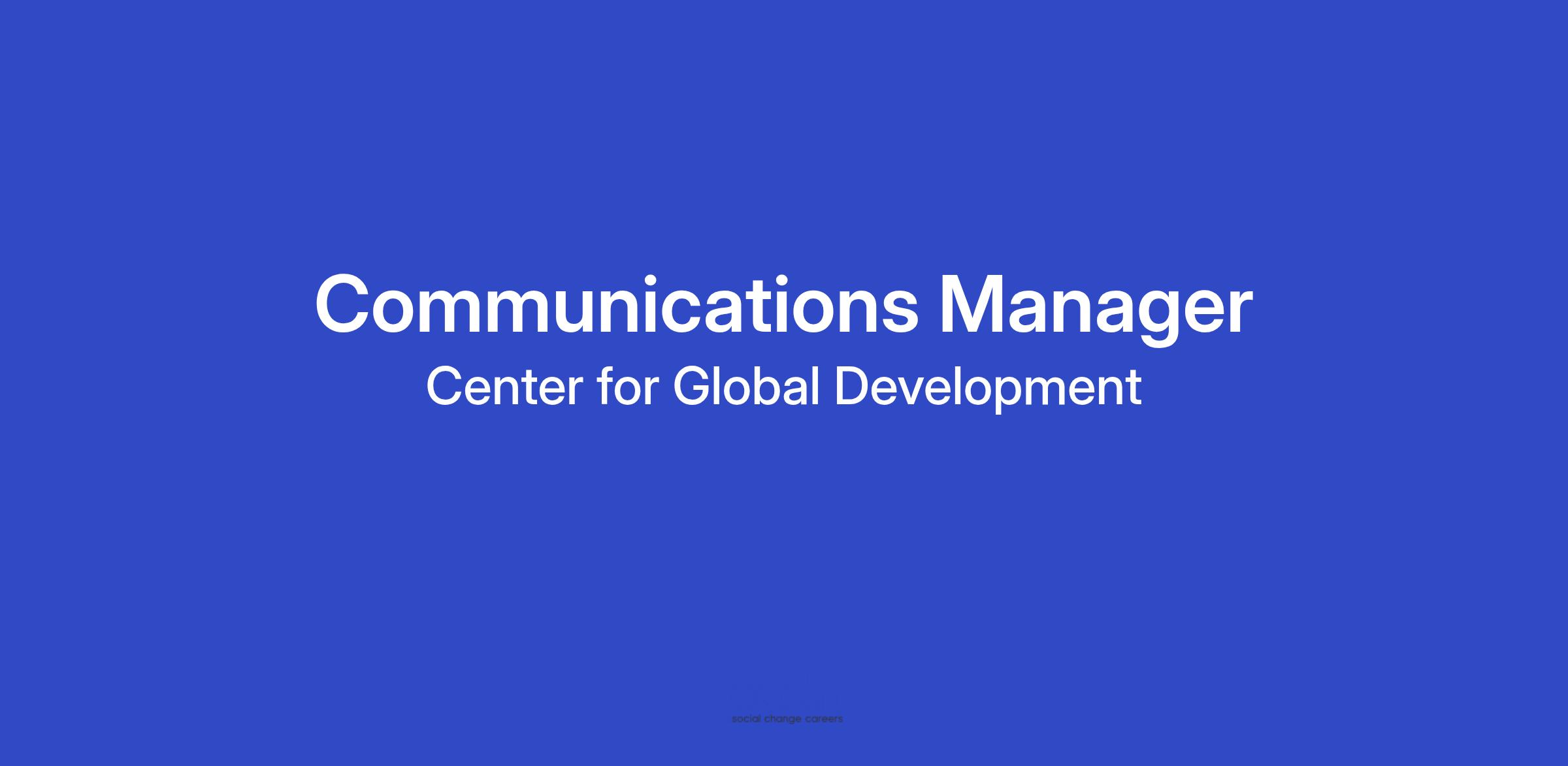 The Center for Global Development (CGD) is an independent, non-partisan, non-profit policy research organization in Washington, DC, and London, UK, that focuses on the issues and institutions that are critical to inclusive development. Through rigorous empirical research and active engagement with the global policy community, we focus on the policy intersections of low- and middle-income countries and the governments, institutions, and corporations that can be partners in delivering greater progress. We seek to improve the policies and practices of the US and other high-income countries, the multilateral financial institutions, international firms, and other powerful global development actors. CGD is seeking an experienced communications professional to join its dynamic Communications team as a Communications Manager. The successful candidate will contribute to the team’s efforts to increase the influence, inclusiveness, and impact of the Center’s research, commentary, and policy analysis.The Communications Manager will work intensively with and to promote several of CGD’s research programs and teams, expanding reach, awareness, and impact, devising strategic communications plans for upcoming work, writing and editing blogs, op-eds, and other materials, conducting media and stakeholder outreach, pursuing paid media opportunities, and working with CGD’s social media, digital, and event strategists to execute strategies in each of these areas.The Communications Manager will also engage with press: developing media strategies to highlight new research; building relationships with reporters; managing incoming press requests; and anticipating and responding to breaking news opportunities.Responsibilities:Strategy and Planning- Serve as communications lead and develop and manage communications strategies and plans for several CGD research programs and teams. This role involves developing relationships with research staff and a familiarity with research in the corresponding areas, to determine the messaging and launch plans for major projects.