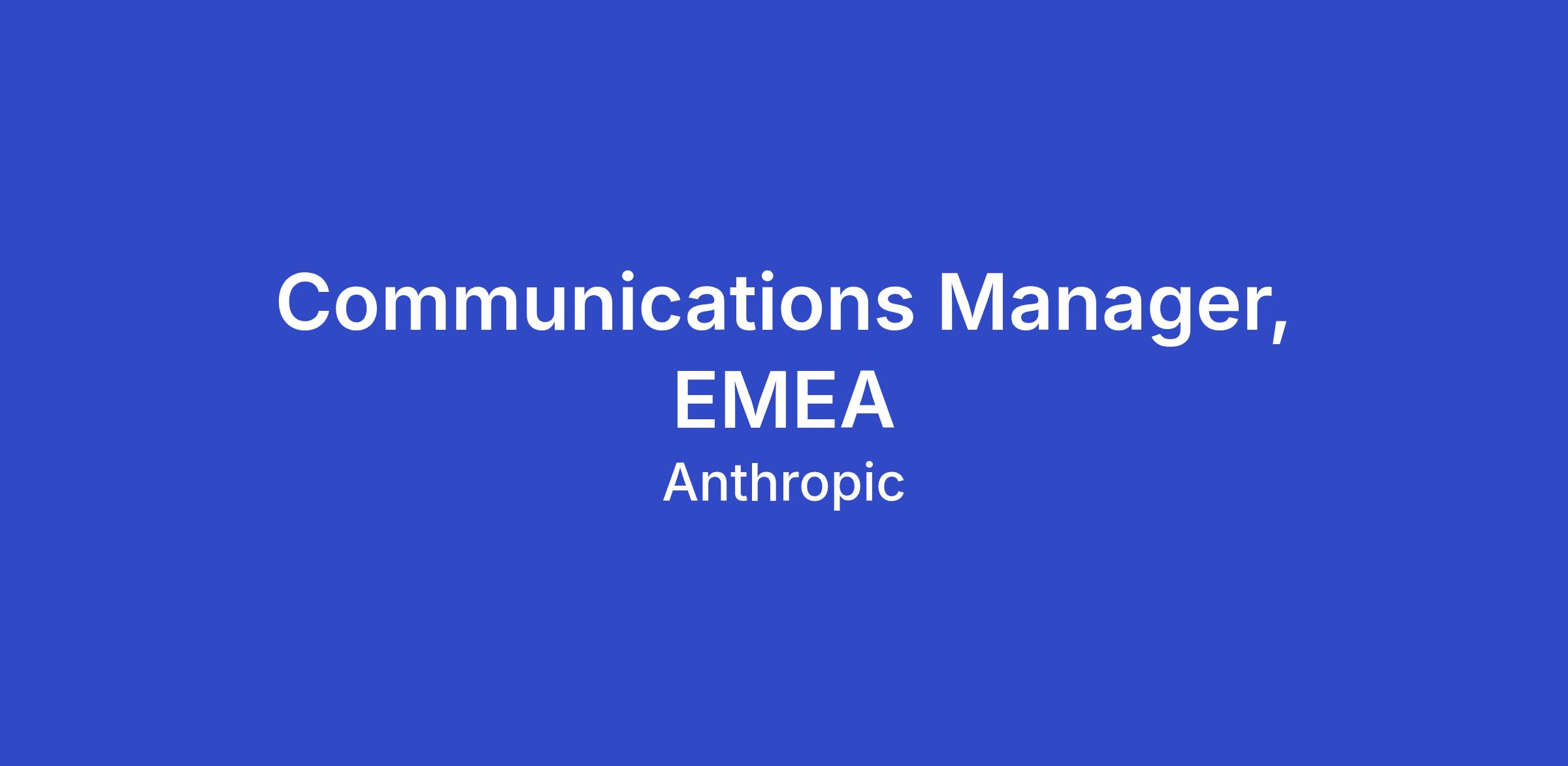 Anthropic seeks a strategic communications professional to lead our communications programs and brand expansion across Europe, with an initial focus on the UK, France, and Germany. You will drive communications across product, corporate, and policy, with a particular emphasis on enterprise communications in the region. Working closely with European spokespeople and cross-functional partners in GTM, Applied AI, policy, marketing, and more, you will shape how Anthropic shows up across all key audiences in the market. You will report to our Head of EMEA Communications.