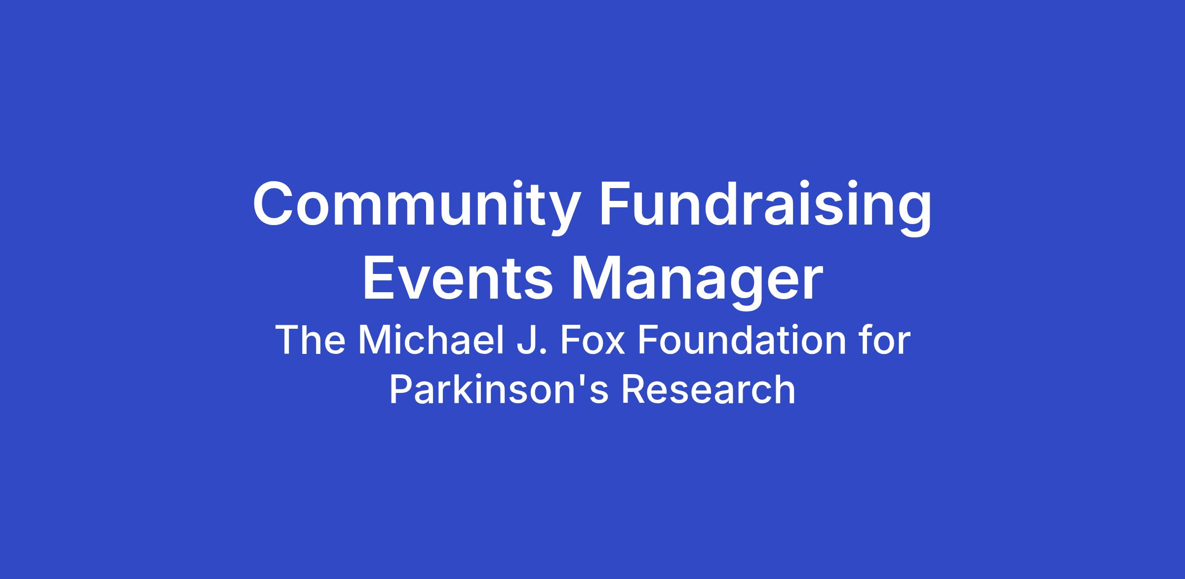 The Michael J. Fox Foundation for Parkinson’s Research (“the Foundation”) is seeking top talent for its Community Fundraising Events Manager position. Reporting to the Senior Manager of Community Fundraising Events, this position supports participant stewardship and logistical components of a portfolio of in-person run, walk and cycling events around the country and the Foundation’s virtual offerings. This role works closely with both internal and external stakeholders to plan elements of a successful run, walk or cycling event.
