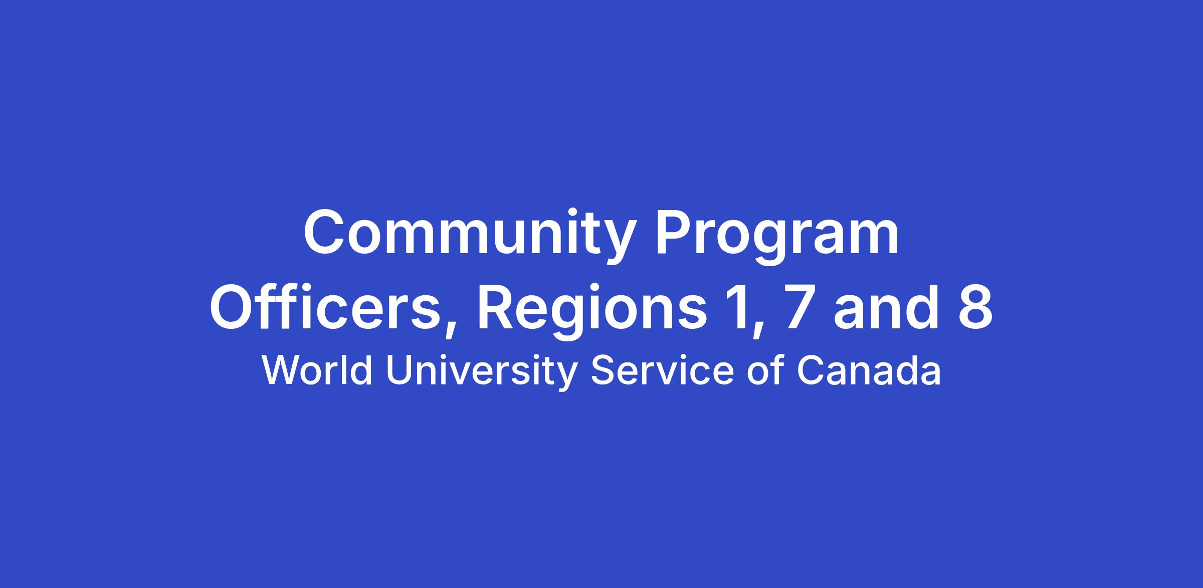 Community Program Officers, Regions 1, 7 and 8